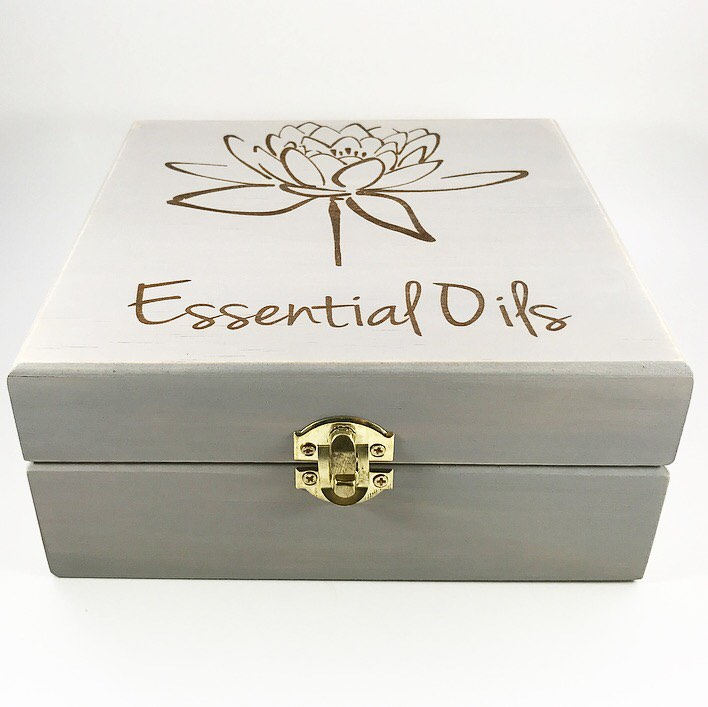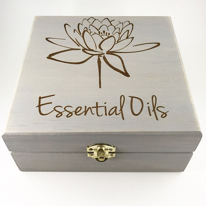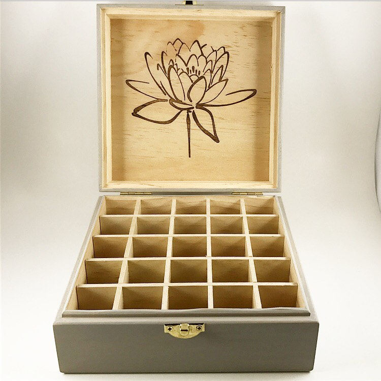 / Essential Oils w/ Lotus!! Essential Oil Storage Box 25 Slot 15ml -Pine- Choose Finish and Custom Laser Engravings - Fit dōTERRA Young Living