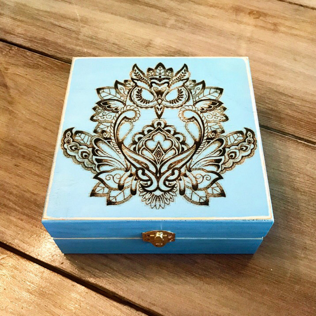 Once box is purchased, simply message the shop with request or detail of intended engravings. Black and White engraving proofs and font selection typically provided within 24 hours of purchase of a box. All boxes are completely unique. Wood grains can differ slightly from box to box guaranteeing no 2 boxes are identical.