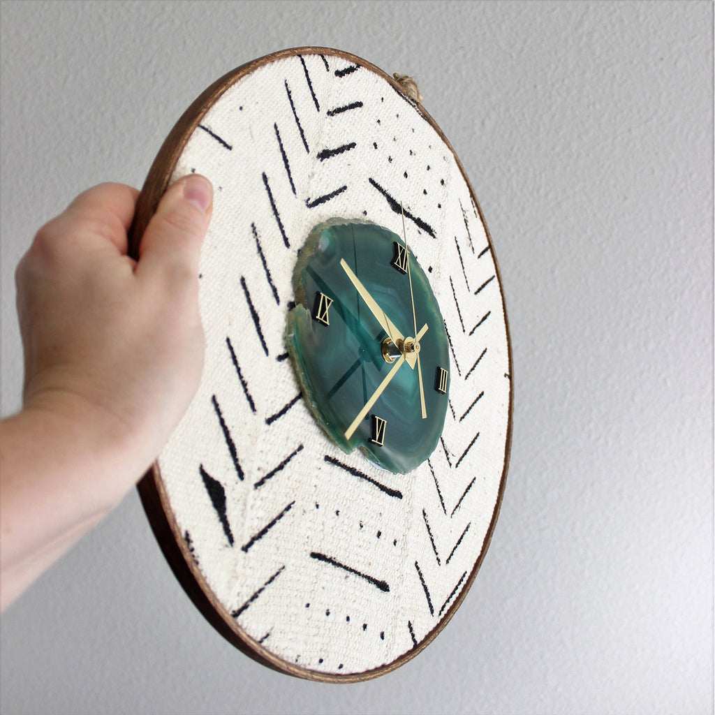 Materials: brass,gold,agate,wood,mudcloth,mudcloth fabric,white mudcloth,green,green agate,green agate slice,green geode,green agate geode,FREE SHIPPING