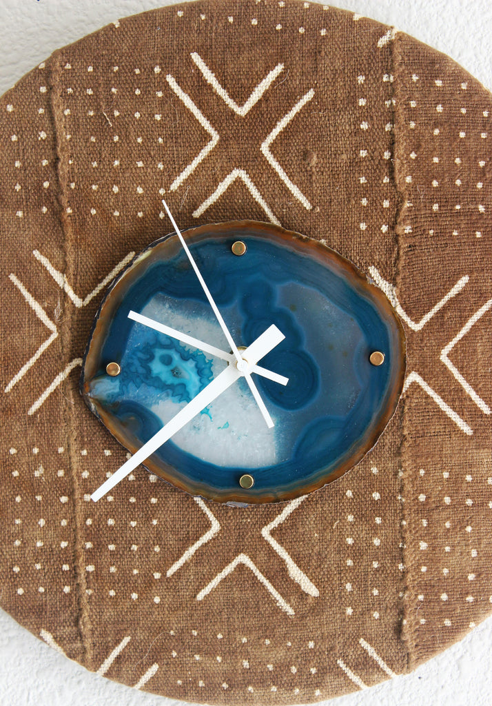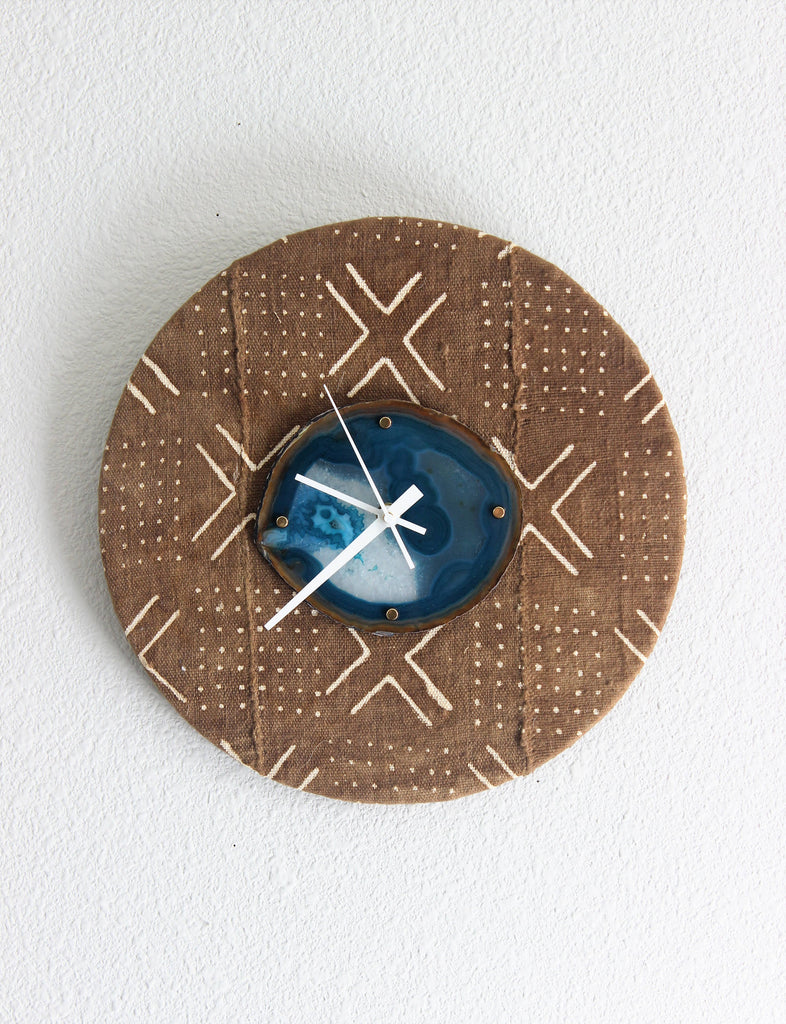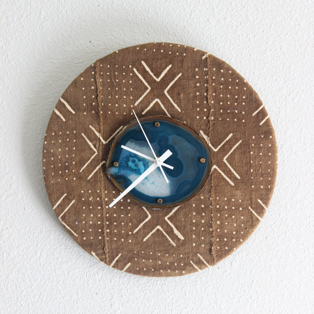 12" Textile Mudcloth Teal Agate Wall Clock