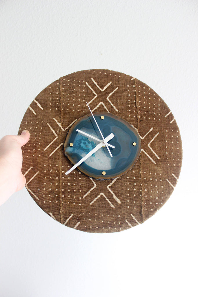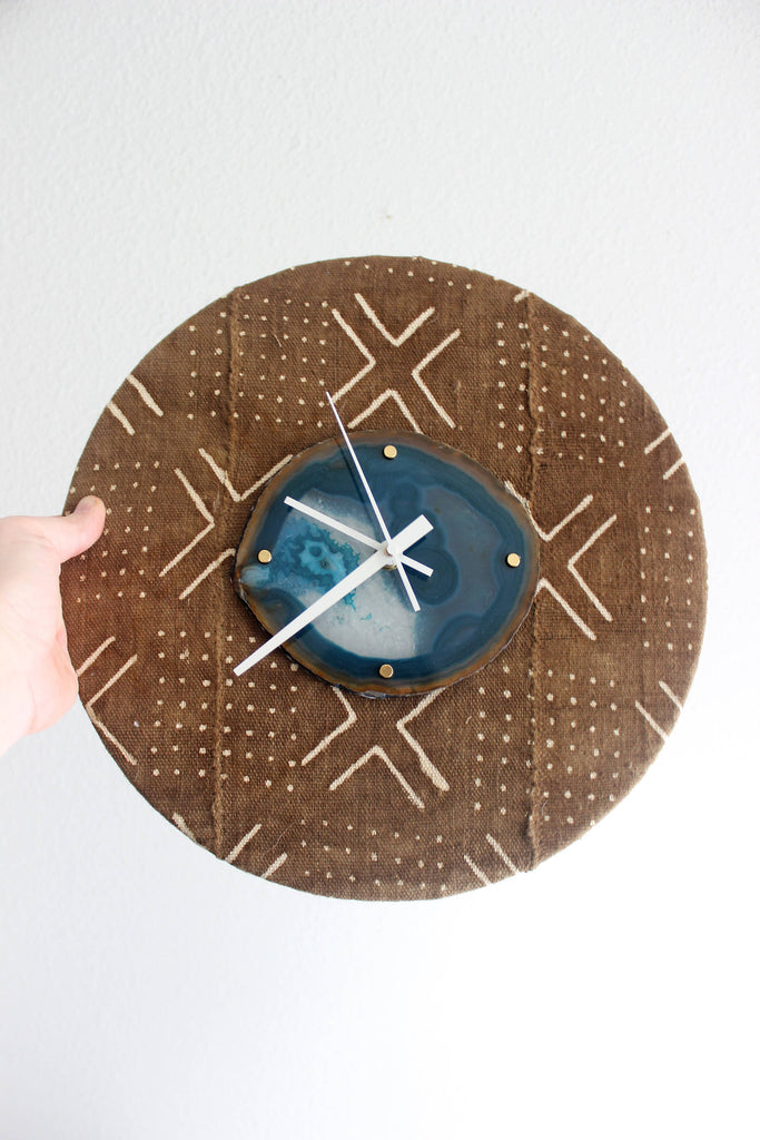 Materials: brass,gold,agate,wood,mudcloth,mudcloth fabric,rust mudcloth,brown mudcloth,teal,teal agate,teal geode,teal agate geode,FREE SHIPPING