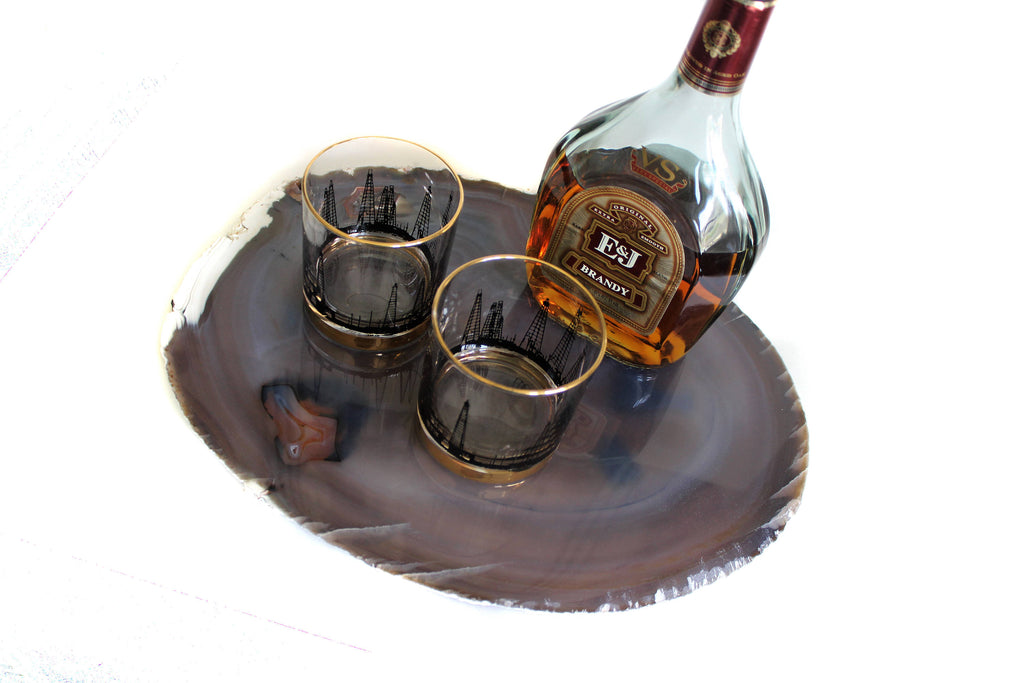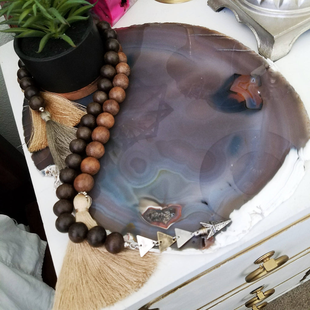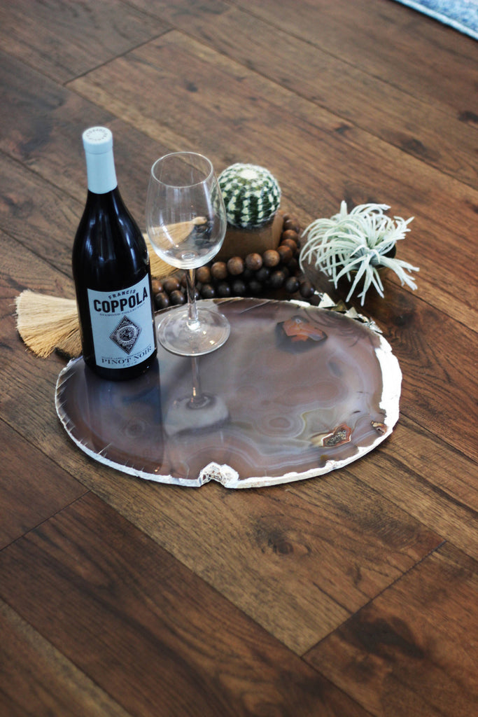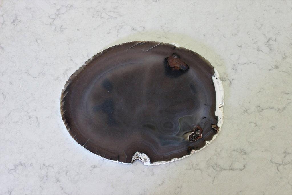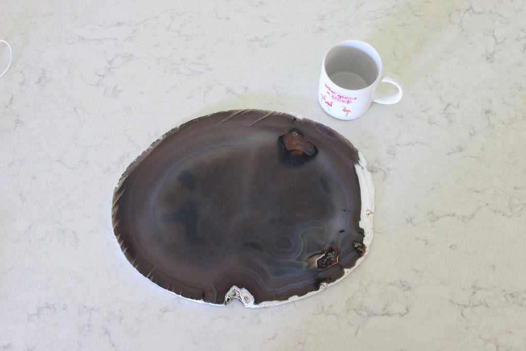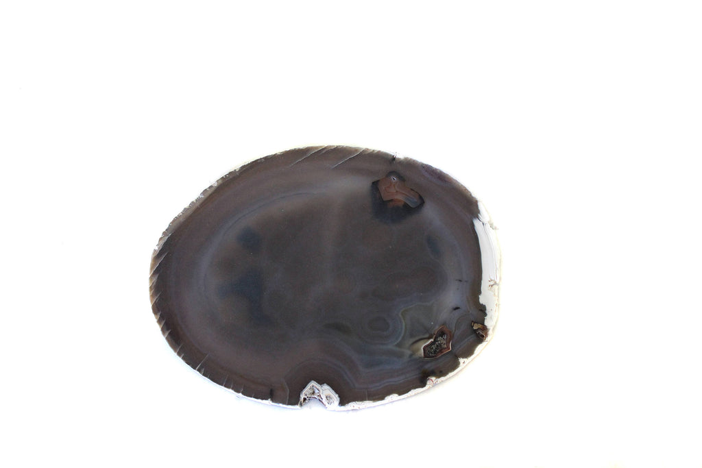 Materials: agate,agate slice,natural agate,earthtone agate,mocha,brown agate,taupe agate,stone tray,geode,geode tray,quartz,white,gray