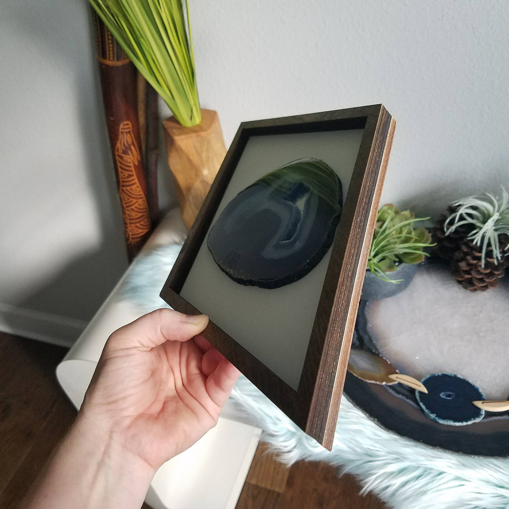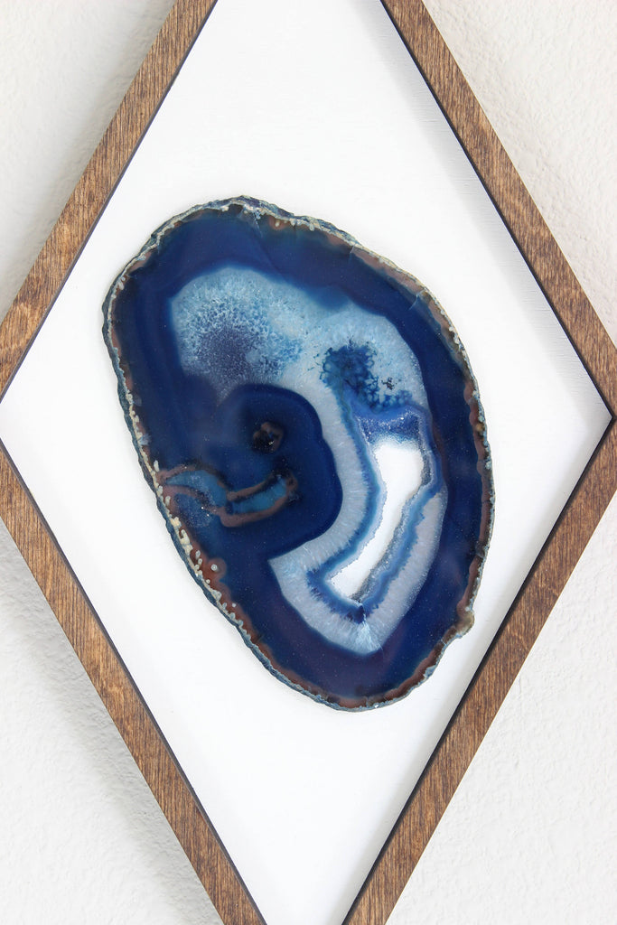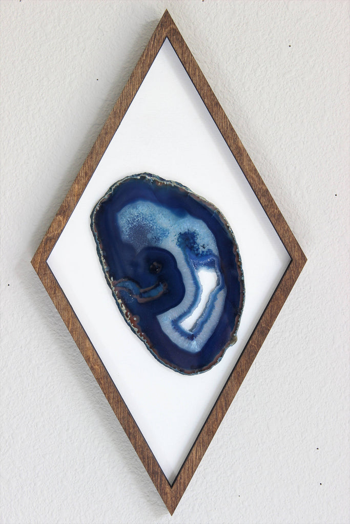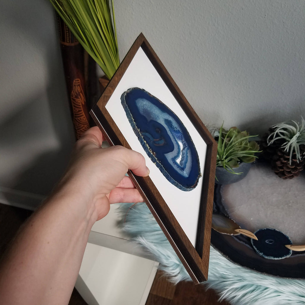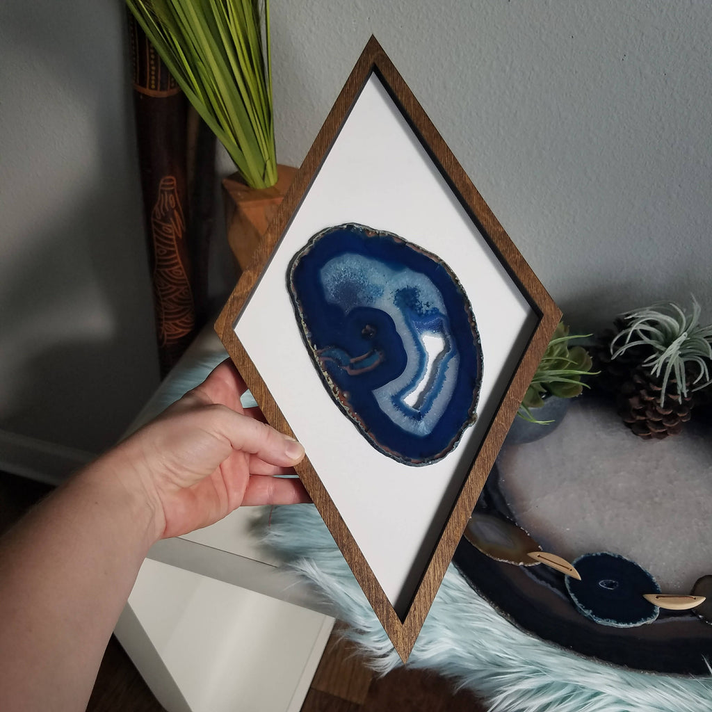 Materials: agate,agate slab,wood,baltic birch,stained wood,geode,crystal,quartz,blue agate,blue geode,white,blue,FREE SHIPPING