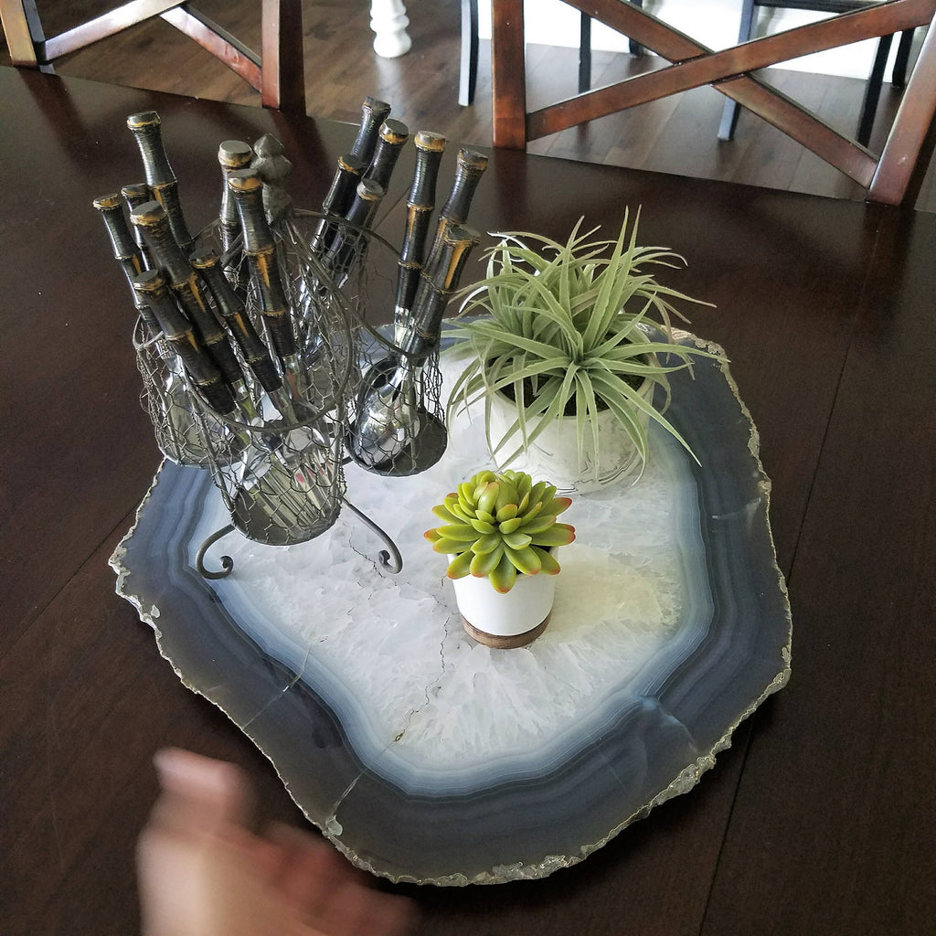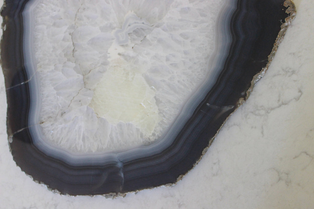 Materials: agate,agate slice,natural agate,earthtone agate,mocha,stone tray,geode,geode tray,quartz,white,gray,black agate,agate slab