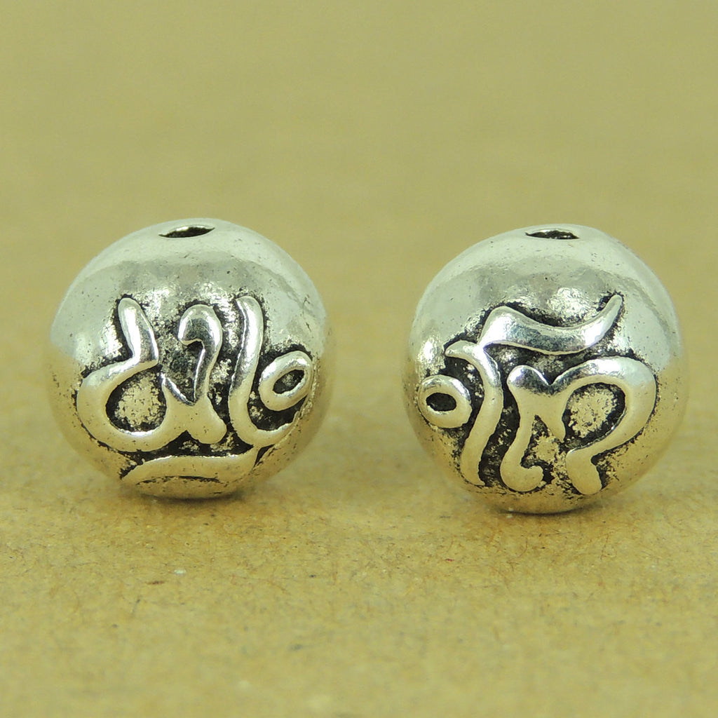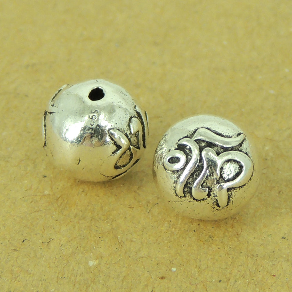 / 2 PCS 925 Stamp Sterling Silver Beads OM Buddhism Vintage Jewelry Making Wholesale Retail WSP469X2