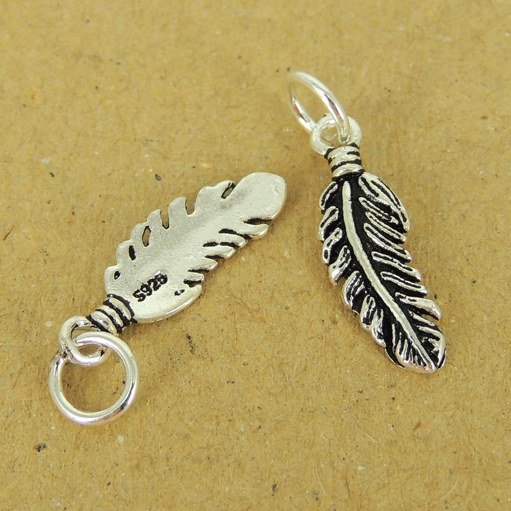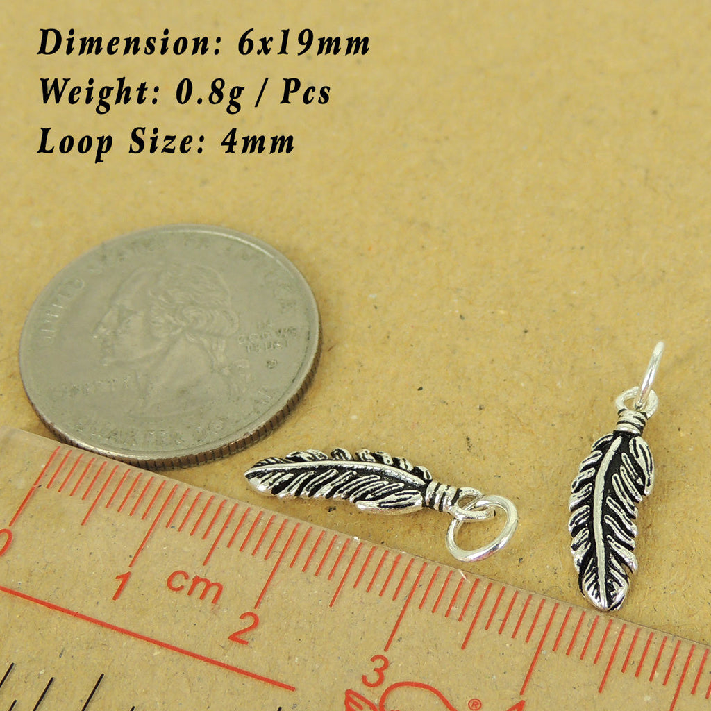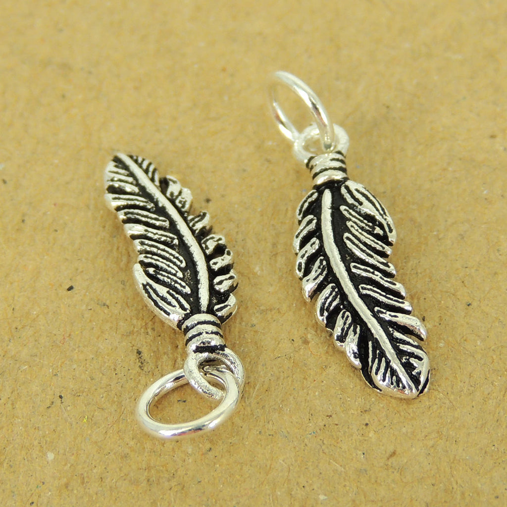 / 2 Pcs 925 Stamp Sterling Silver Small Feather Pendants DIY Jewelry Making WSP539X2 Wholesale: See Discount Coupons in Item Details