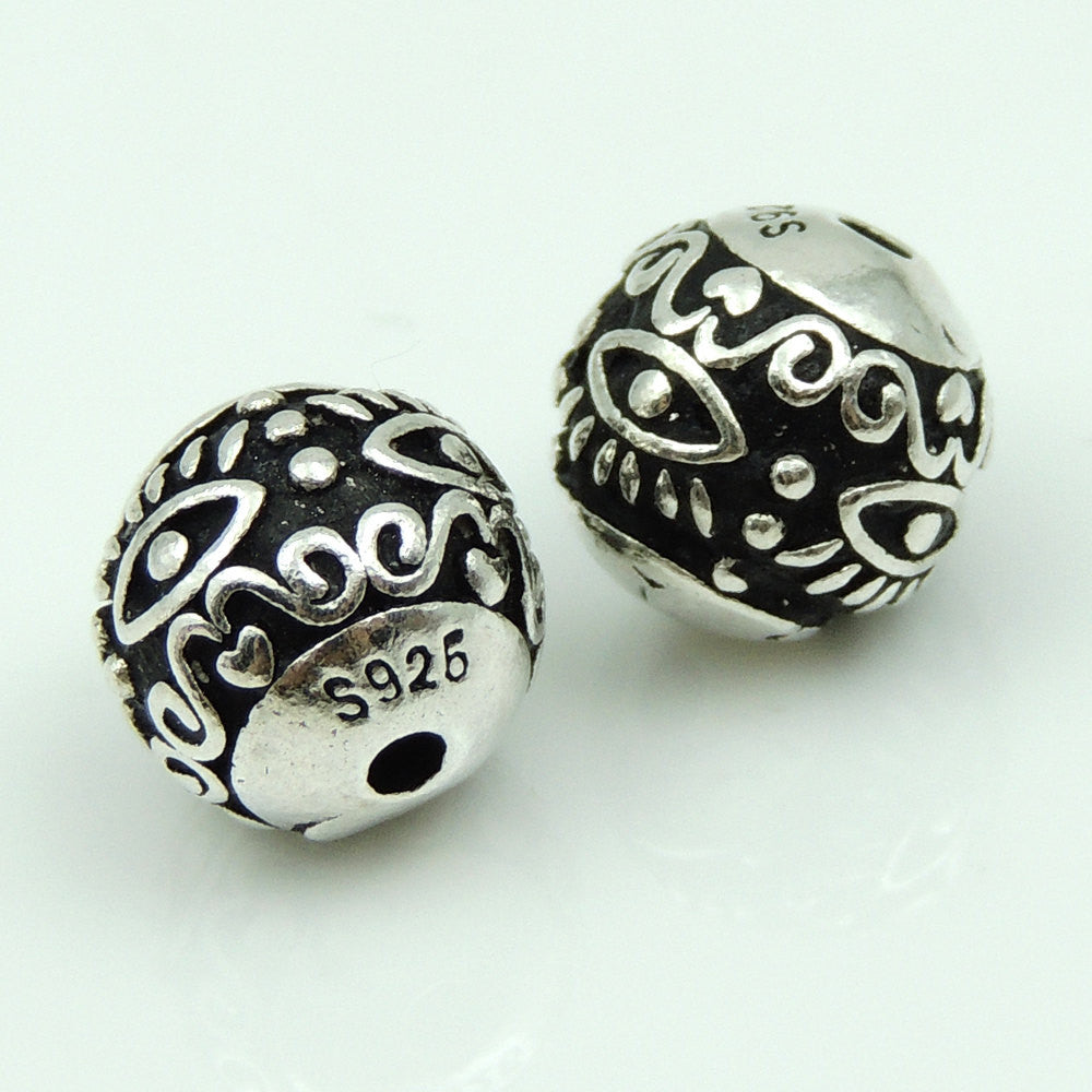 / 2 PCS 925 Stamp Sterling Silver Vintage Round Bead WSP191X2 Wholesale: See Discount Coupons in Item Details