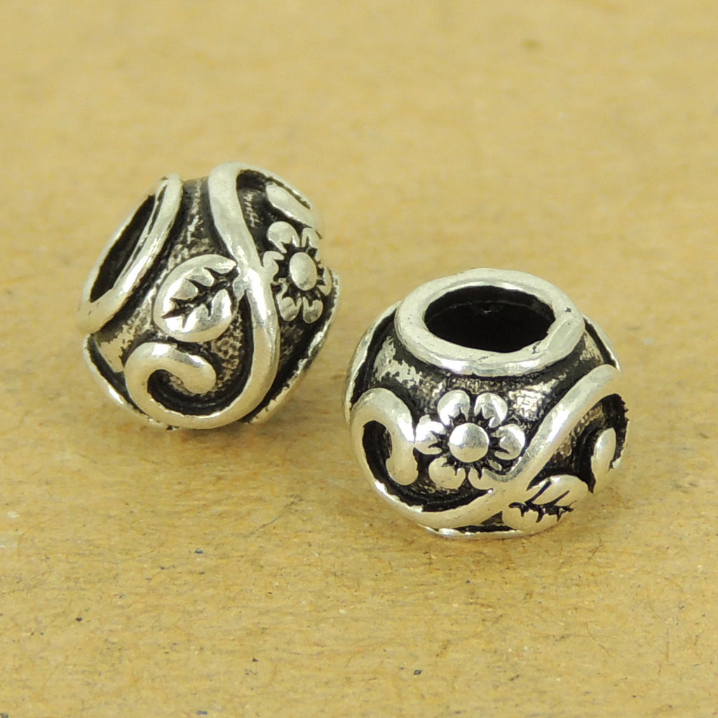 / 2 Pcs Sterling Silver Barrel Beads Leaf Flower Vintage DIY Jewelry Making WSP509X2 Wholesale: See Discount Coupons in Item Details