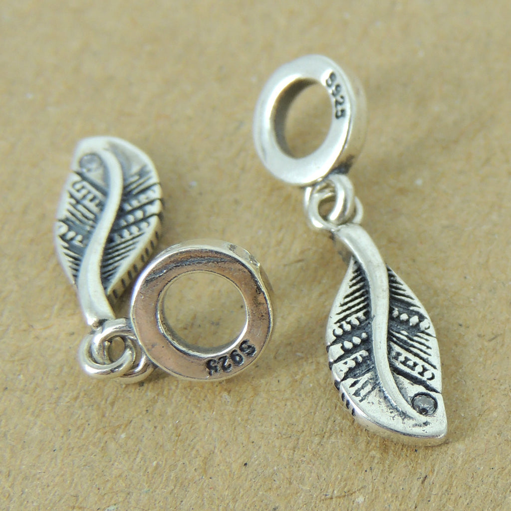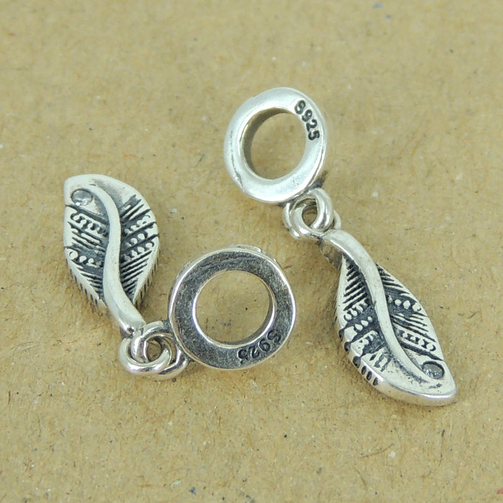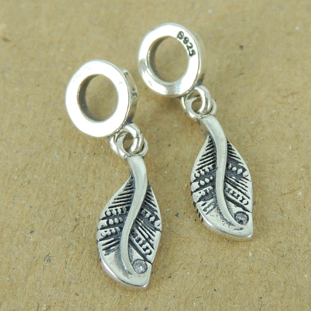 / 2 Pcs Sterling Silver Leaf Charm Pendant with CZ Stone 925 Stamp WSP383X2 Wholesale: See Discount Coupons in Item Details