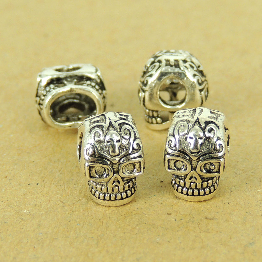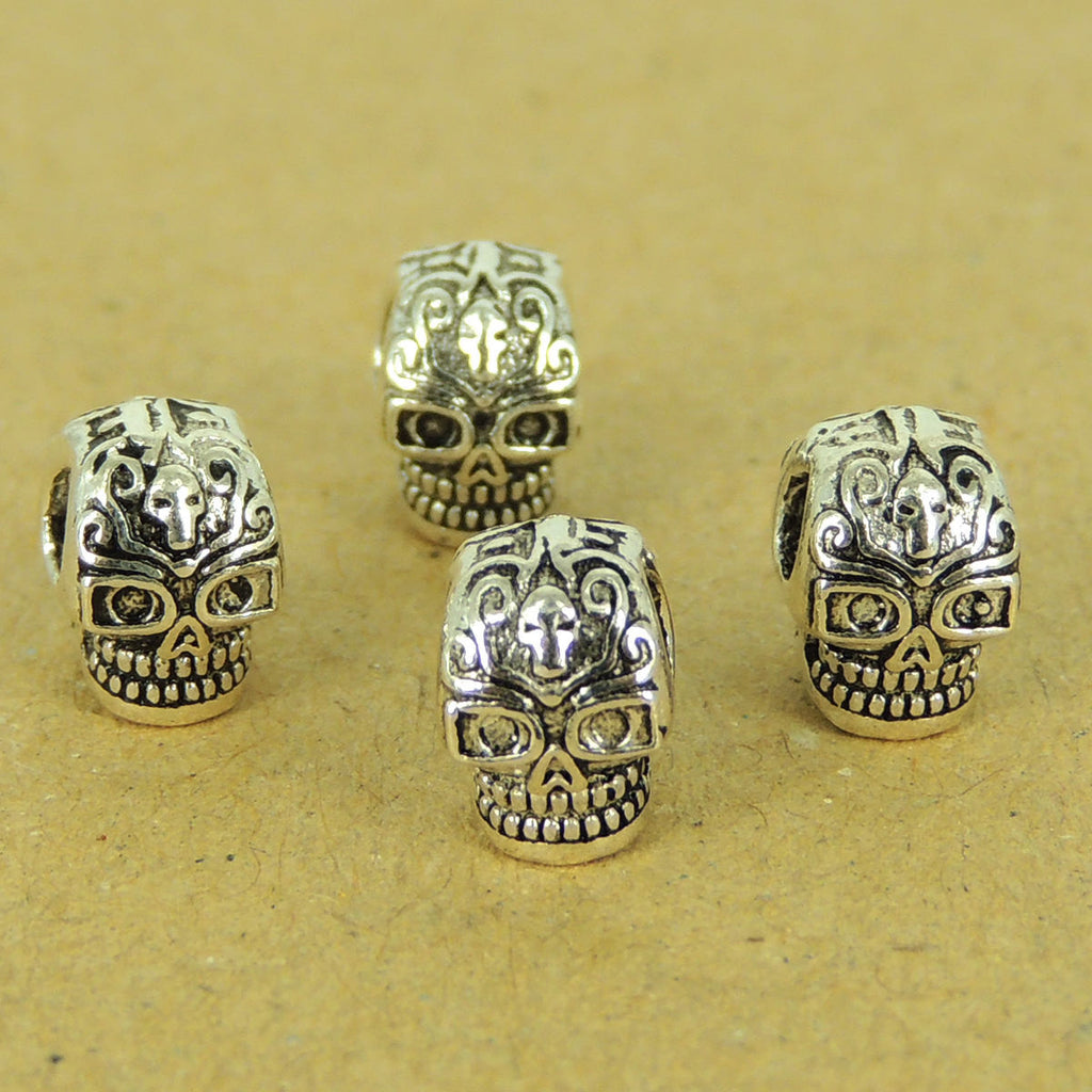 4 Pcs 925 Sterling Silver Double-sided Skull Beads Dia De Muertos Day of The Dead DIY WSP553X4 Wholesale