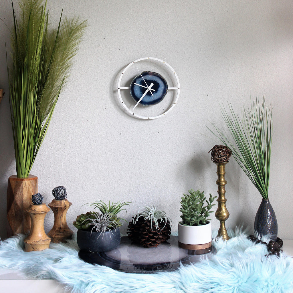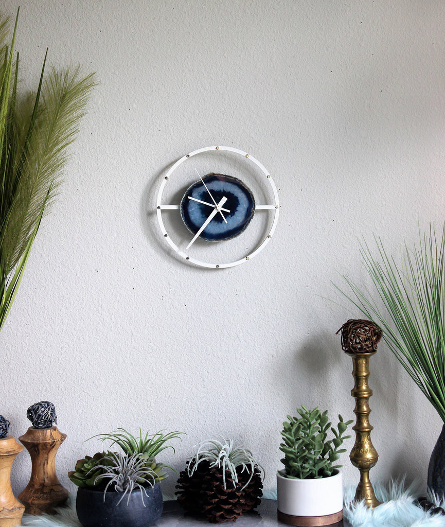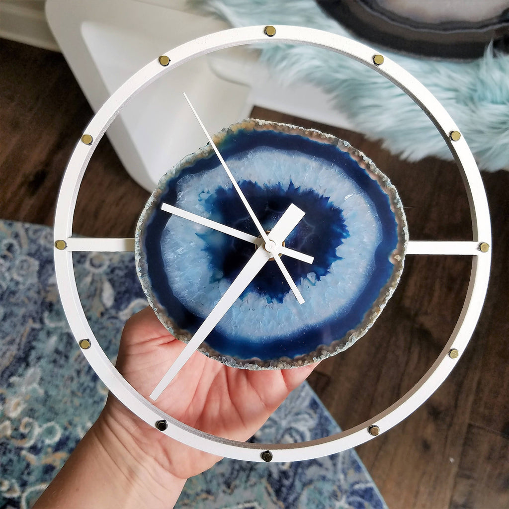 Materials: agate,wood,brass,white paint,gold,agate slice,quartz,blue,blue agate,blue agate slice,blue geode,druzy,FREE SHIPPING