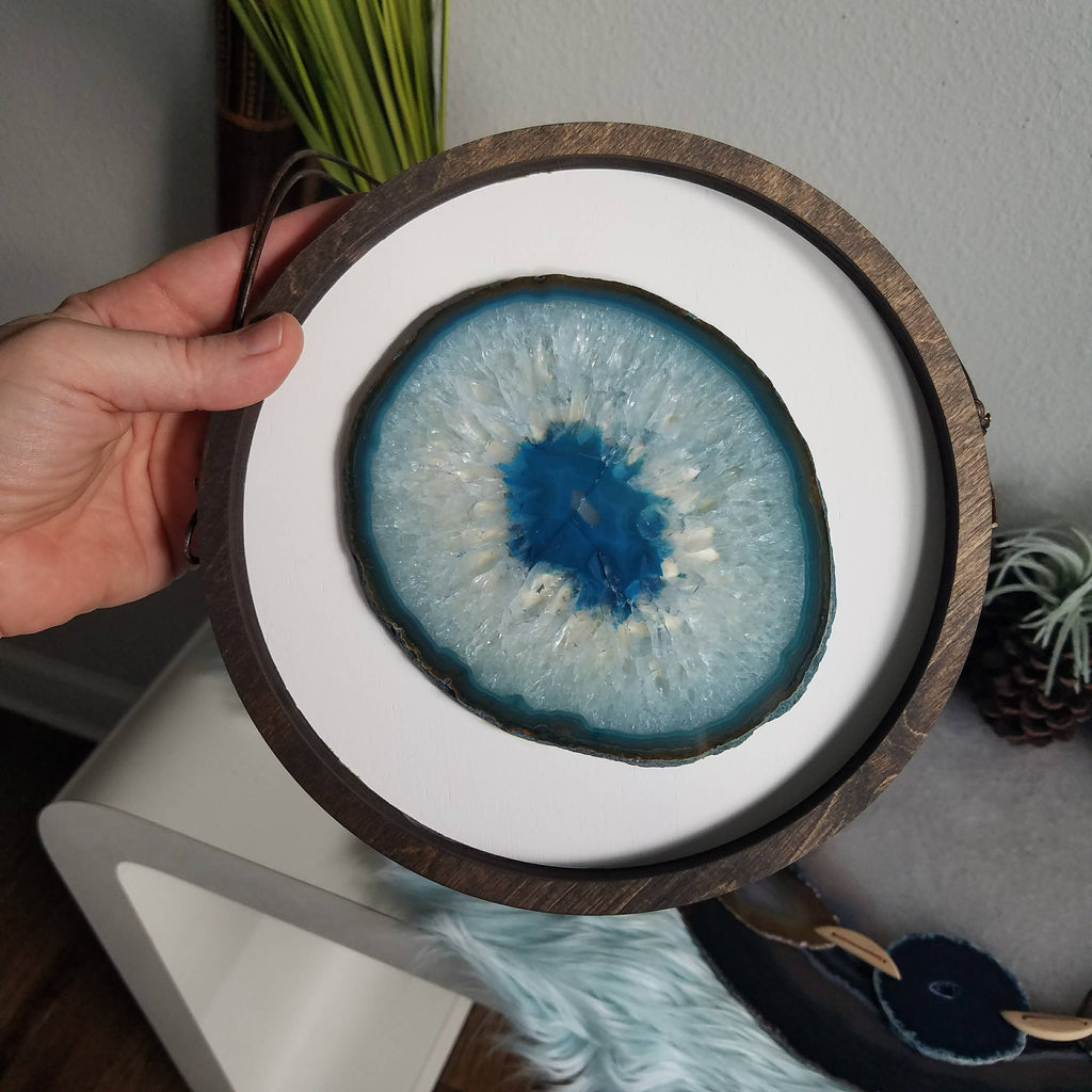 Materials: agate,agate slab,wood,baltic birch,stained wood,geode,crystal,quartz,teal agate,blue geode,teal blue agate,white,FREE SHIPPING