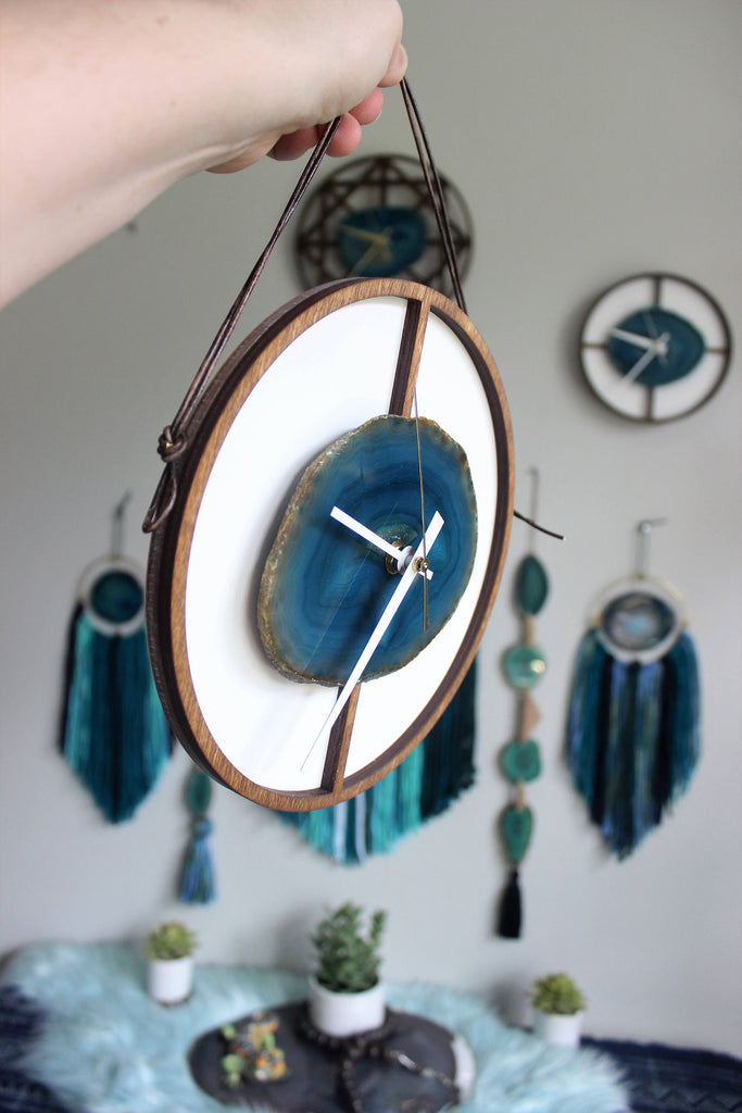 Materials: agate,wood,brass,gold,quartz,blue,blue agate,blue agate slice,blue geode,druzy,FREE SHIPPING,stained wood,teal agate