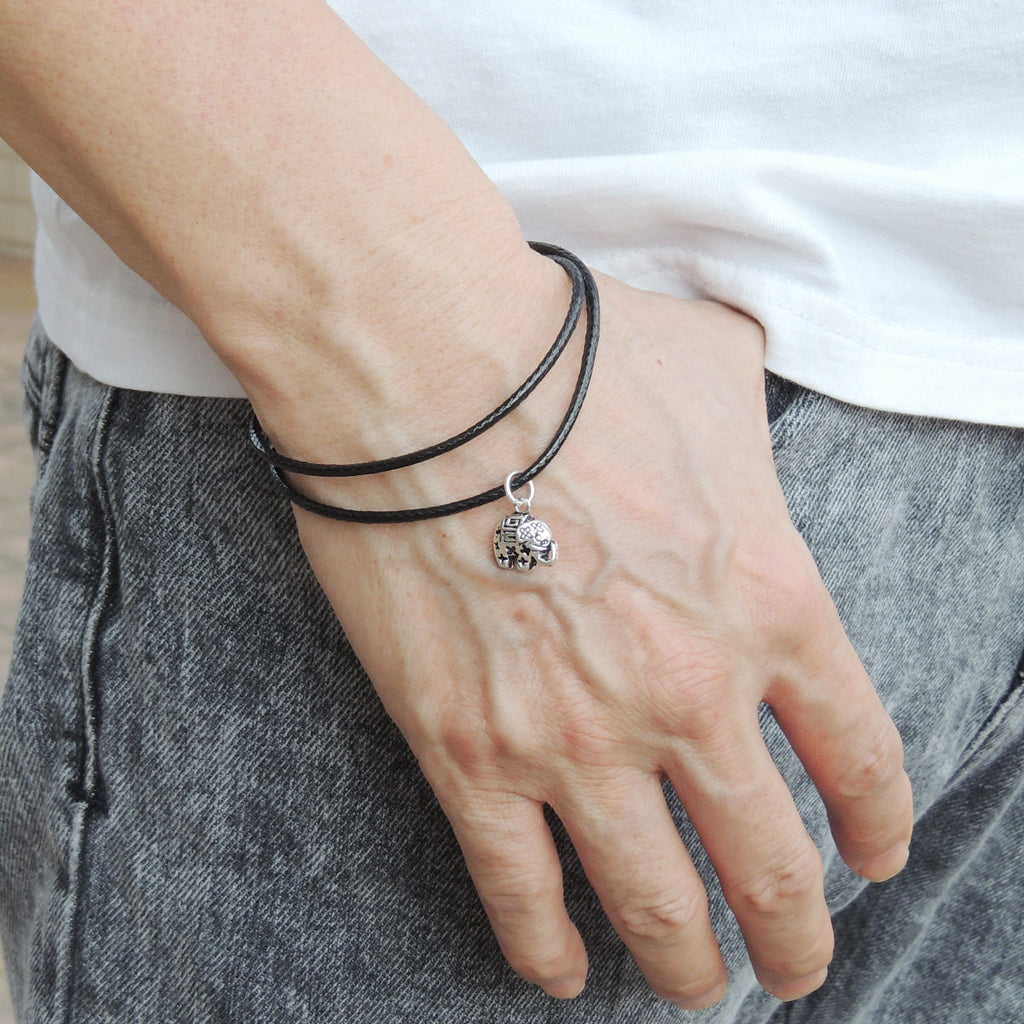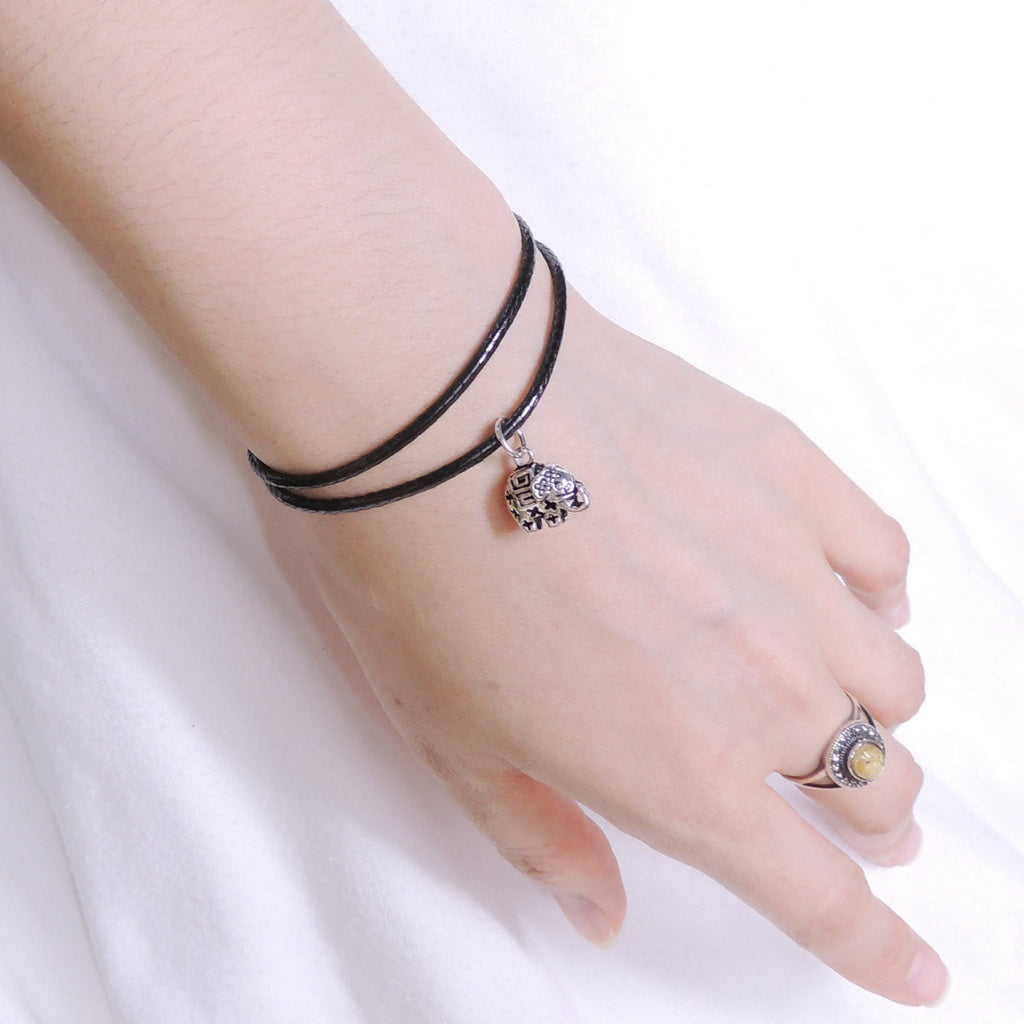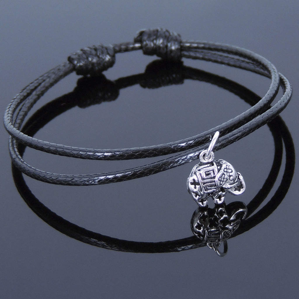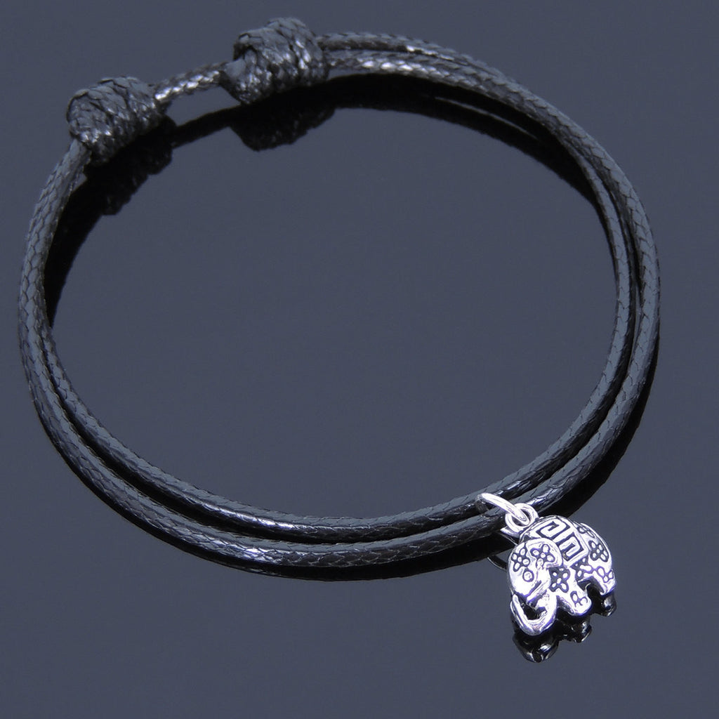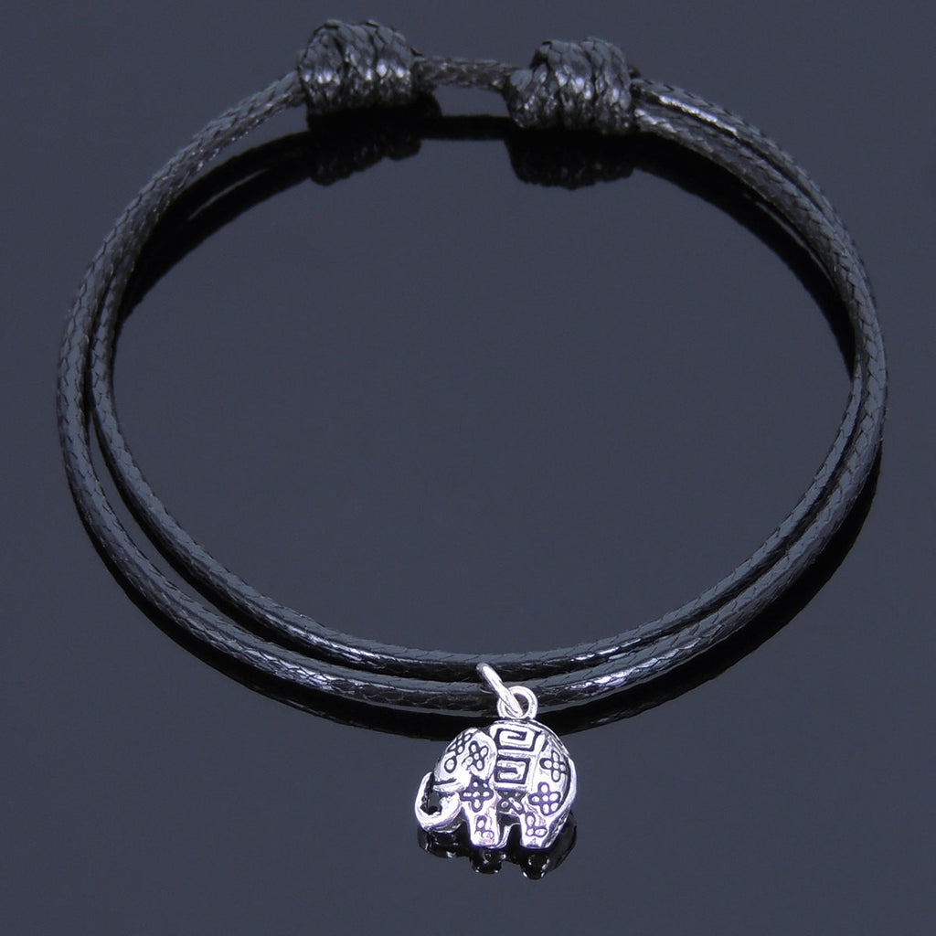 925 Sterling Silver Vintage Elephant Pendant Handmade Adjustable Wax Rope Bracelet Men Women DiyNotion BR525