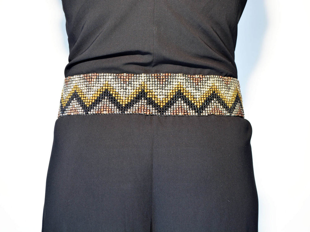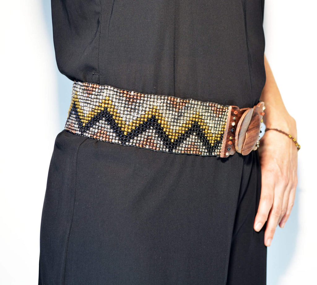 This colourful elegant and stylish elastic stretch belt is a true work of art! Multi-shaded green beads are threaded on woven elastic, so you can wear this as a waist Belt, or stretch it around your hips if you prefer. The gorgeous Rosewood buckle is an impressive and delightful addition to an already stunning beaded belt . Funky yet chic it adds