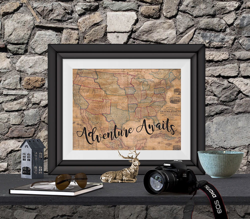 www.etsy.com/listing/473139759/printing-service-add-on-listing-for-anAdventure Awaits, Old Map, Vintage Map Quote. Printable Wall Art
