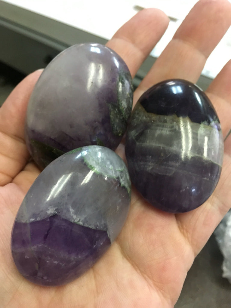 We will handpick one palm stone for you. The palm stone will be from the batch that is pictured, however it may not be a stone from the photo as the batch was quite large.