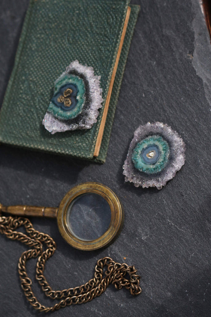 Stalactites are found around the World and naturally form in caves. As each drop of mineral rich water falls, it leaves behind a small ring~ and with every subsequent drop, slowly this once single ring deposit forms into lengths of mineral rich crystal geodes which are then cut in to slices to view its beauty... somewhat similar to the rings of an aged tree.