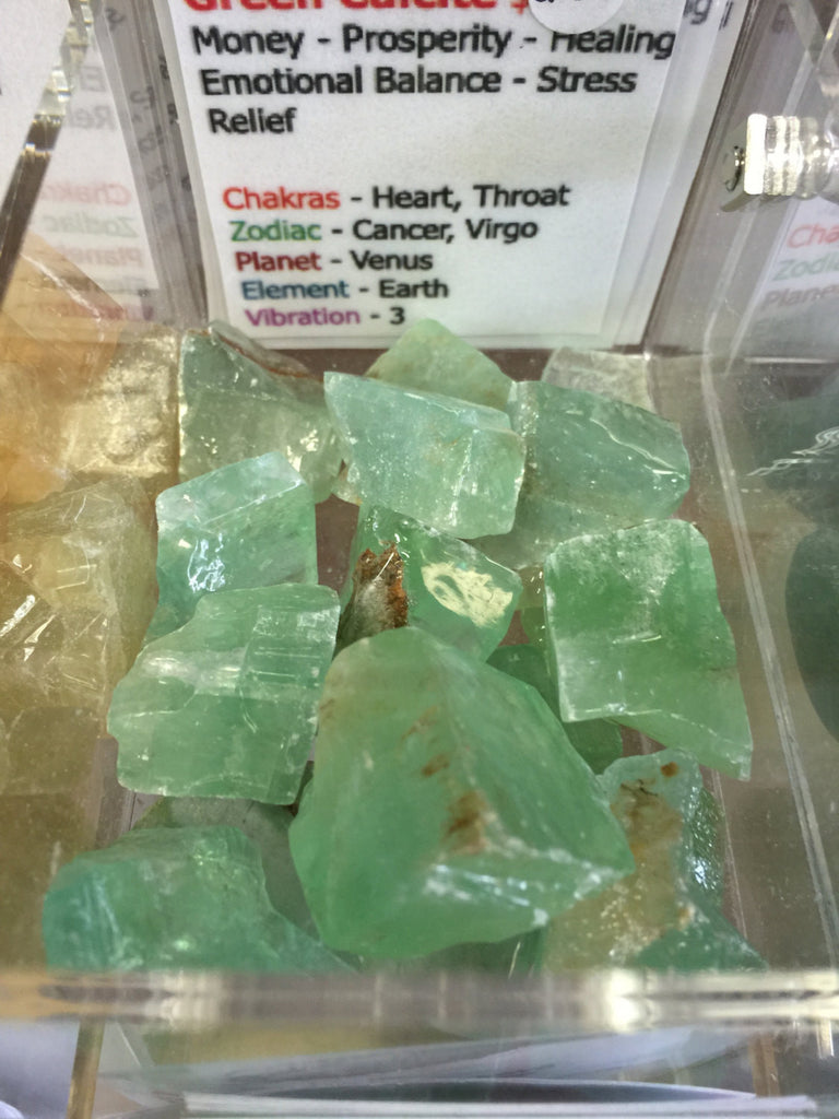 Green calcite is a grounding and centering stone that brings stability. It increases success, prosperity, business, and fertility of all kinds. It is an excellent stone for gardening. It is also considered a stone of manifestation because of it's ability to develop increase in all areas.