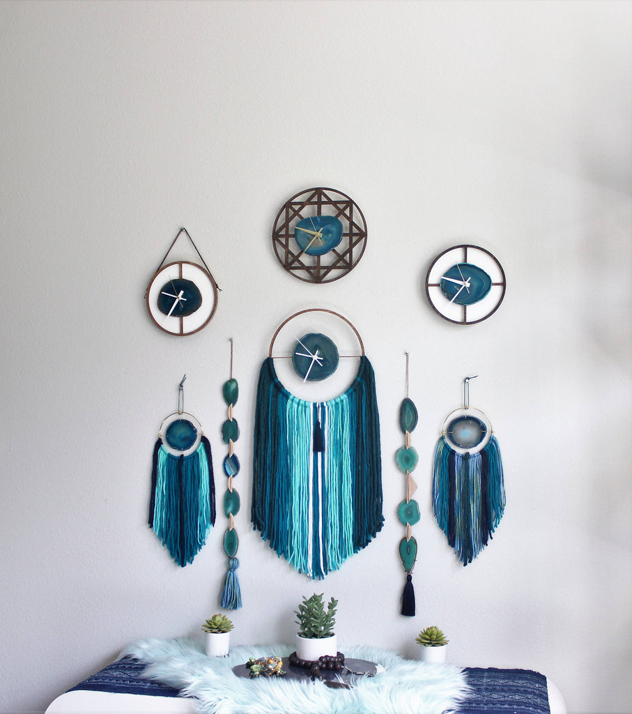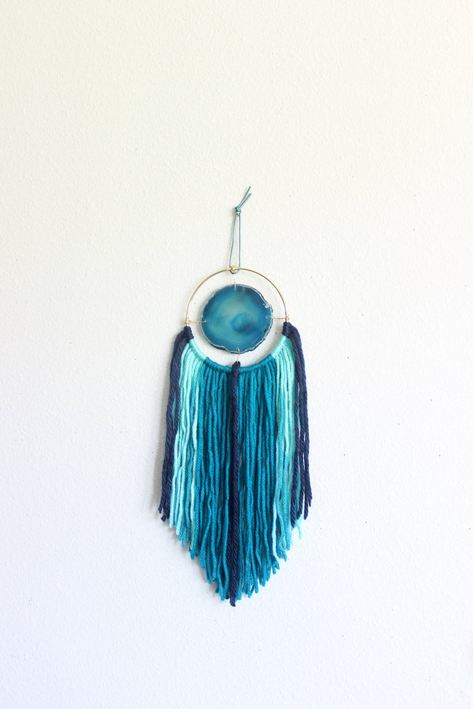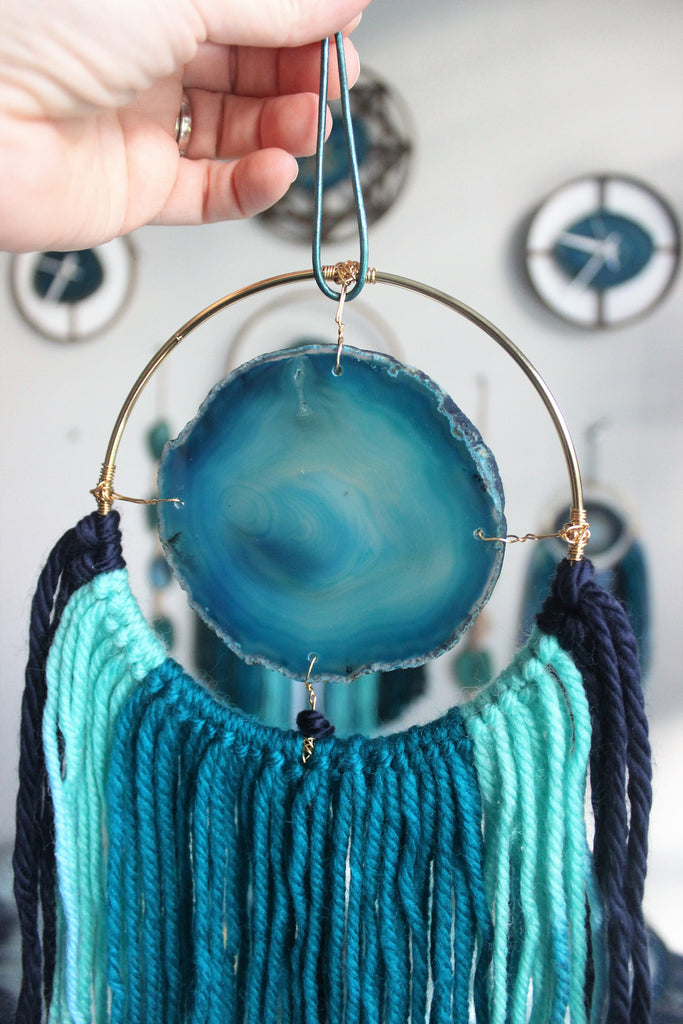 Materials: agate,agate geode,teal agate slice,teal geode,teal blue,teal blue agate,wood,yarn,fiber,turquoise,FREE SHIPPING,blue,blue agate