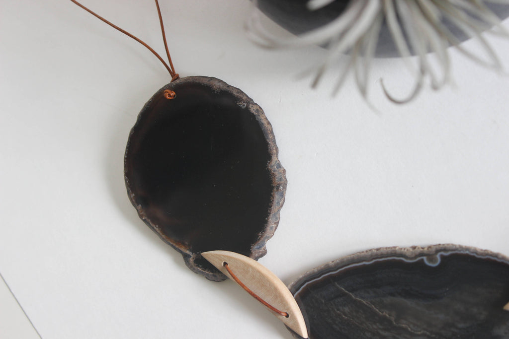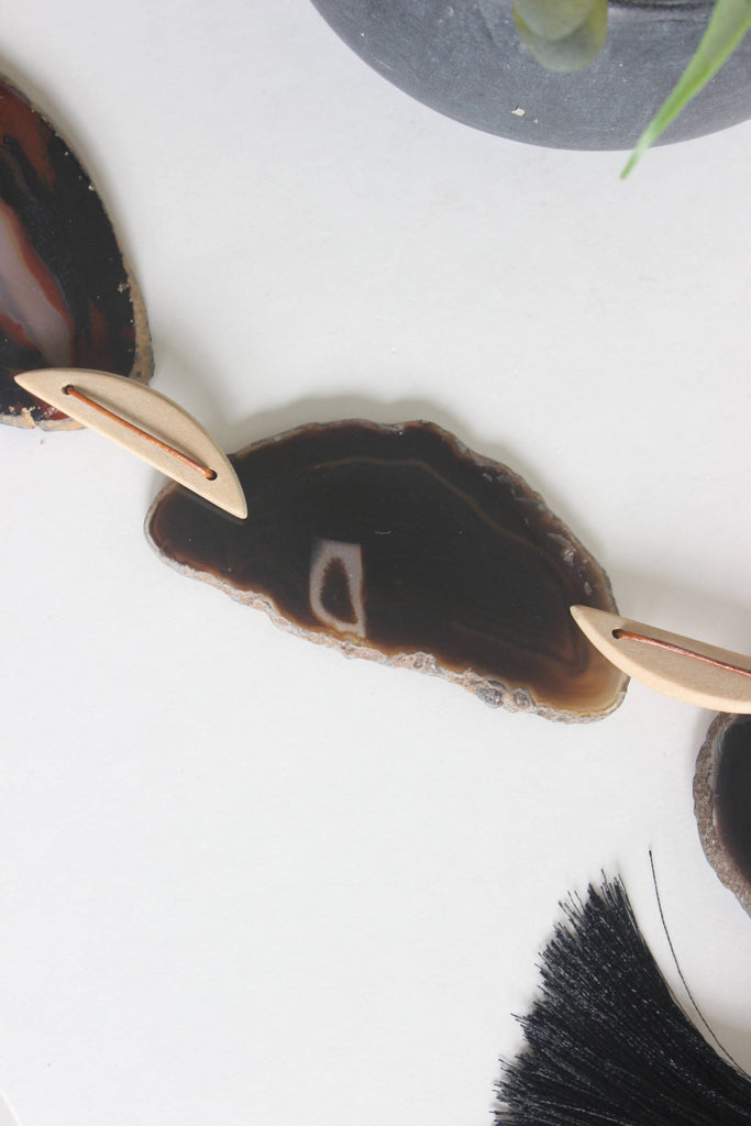 Materials: agate,wood,bronze leather,leather,agate slice,silk,silk tassel,natural agate,natural agate slices,FREE SHIPPING,gray agate,black agate,gray geode