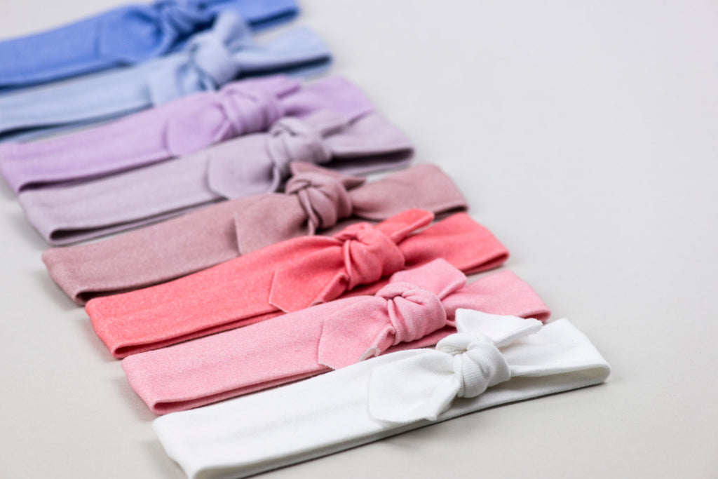 Each headband is expertly handcrafted to order, using only the very best fabric to make our products. We use only the highest-quality Fairtrade Organic Cotton, ensuring we offer the very best in both quality and design. This cotton is luxuriously soft, and the fibres are knitted together to provide a wonderful stretch so that we don't need to put in any irritating or uncomfortable elastic. Featuring a contemporary raw-edge design, your little one's bow wont flop or droop, and you can easily tie and adjust the headbands to suit her own individual style.