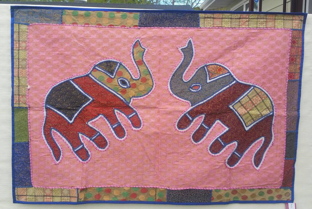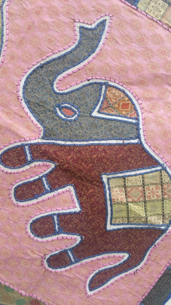 Pink Banaras Hand Embroidered Elephant Tapestry