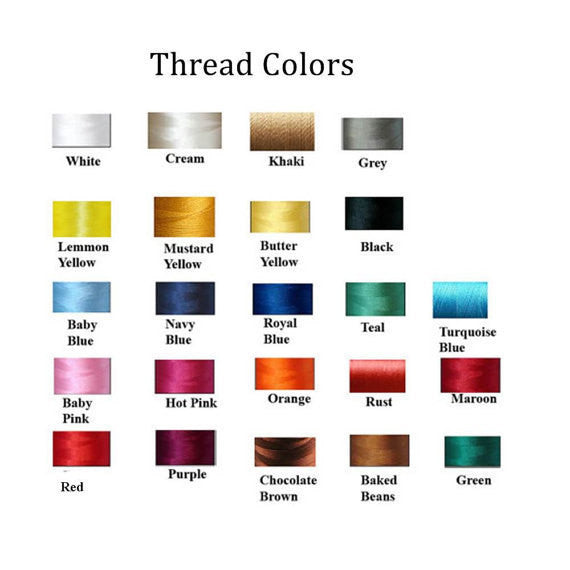 4) make a note about the letters you like to monogram, custom piping color, and the color of the thread, and the style in the notes field when checking out the order.