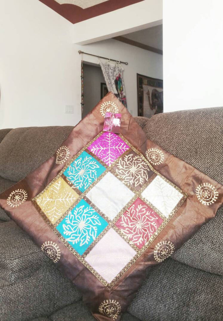 Coming from the Rajasthan region of India known for its beautiful handicrafts and vibrant culture, Sanganeri block printing is traditionally done by hand. The top part of the cushion cover is a collage of beautiful patches with Hand block printed on them. The amazing cushion covers beautifully blend with any type home decor.