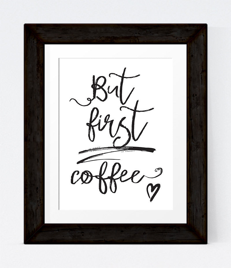But First Coffee Sign Kitchen Decor, Coffee Print, Printable Wall Art, INSTANT DOWNLOAD in 3 Sizes, Black and White Print, Kitchen Wall Art