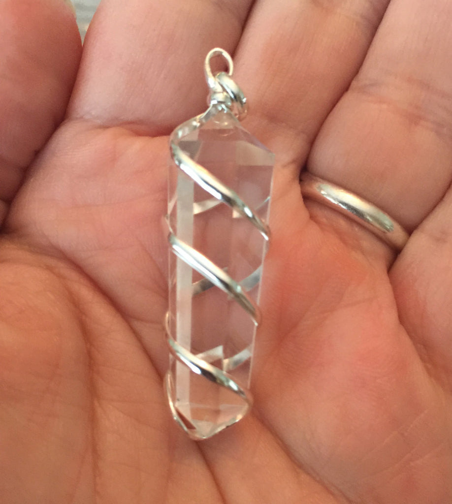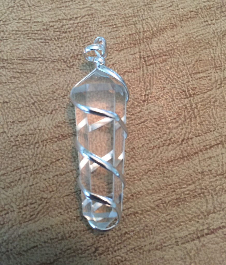 Clear Quartz Wrapped Pendant. Necklace NOT included. Silver plated.