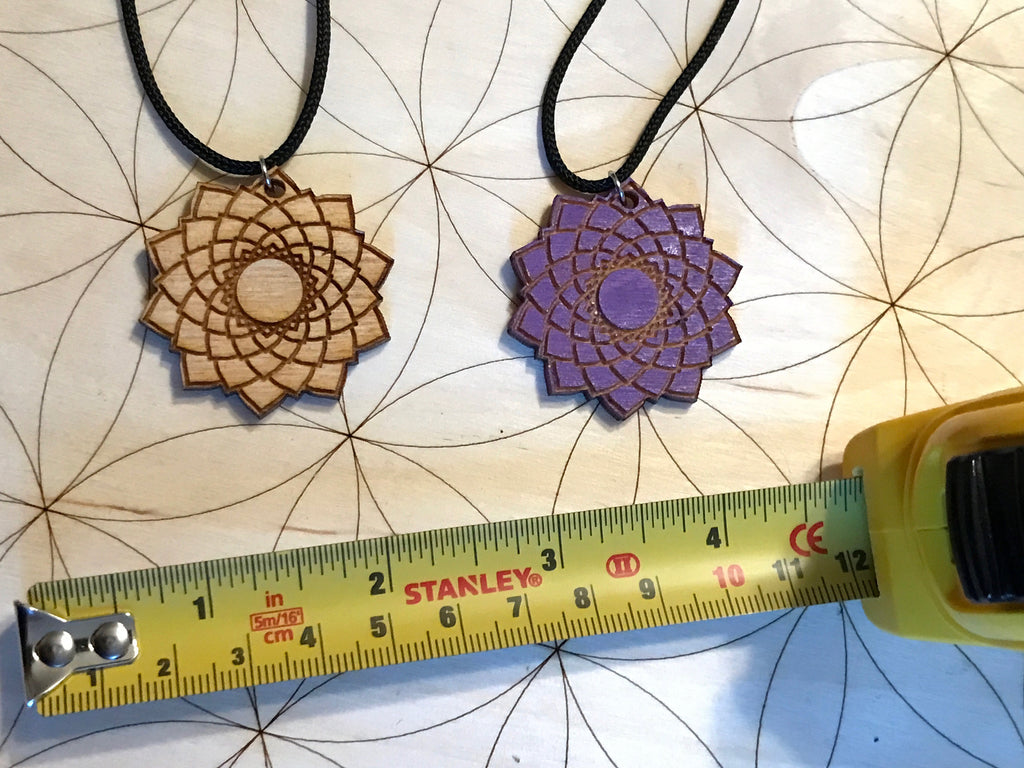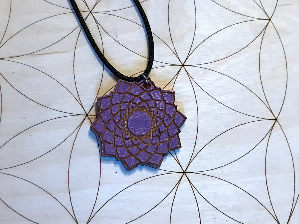 You may choose between purple painted or natural stained. This is a wooden Crown Chakra Pendant with an adjustable parachord necklace. They are made out of birch wood. They made to order please allow up to 5 business days for production.