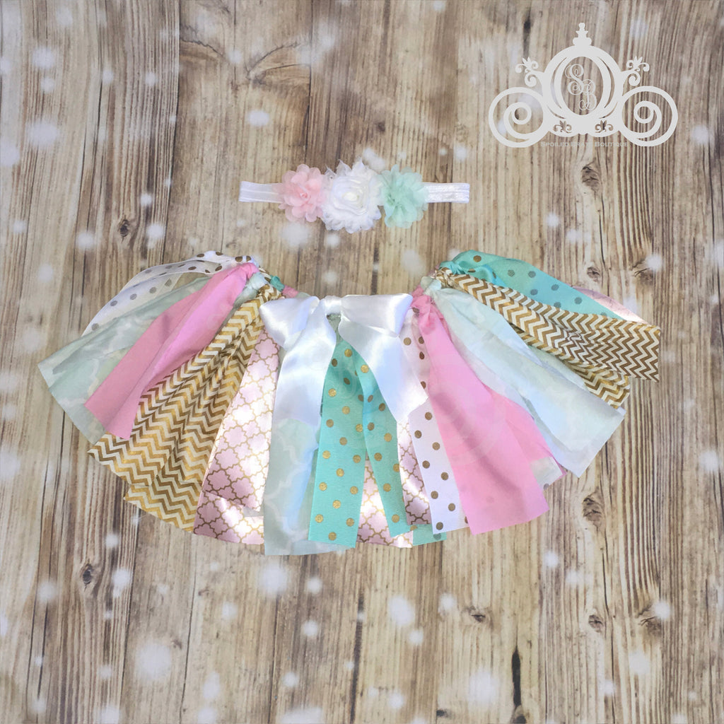 **ALL DESIGNS ARE MADE TO ORDER & NOT READY TO SHIP. THE CURRENT TURN AROUND TIME IS 1-2 weeks. Please message us for availability and timelines if you need something rushed. nnSo gorgeous for newborn pictures, 1st Birthday, cake smashor for a photo shoot! nnSIZING- Please measure your child, when possible, to determine the best hip circumference for them. Each child grows differently and are not all the same size at that age. Sizes listed are average and not guaranteed. nnEXTRA FULL TUTU- Our tutus are glamorous! We use 3-4 types of fabrics and ribbon tied throughout it to make it extra full and bouncy! We hand press every strip before mailing to help keep it crisp and beautiful for you! nn*Fabric patterns may very slightly by season. If fabric is unavailable, a close substitute will be used. Remember designs are custom so we try to offer unique designs to each client. nnMatching headband & high hair wall banner also available. nnCARE INSTRUCTIONS:nnSPOT CLEAN ONLY, light fraying will happen on edges of fabric. Spray with water and iron fabric strips to keep looking fresh! Hang to minimize wrinkling!