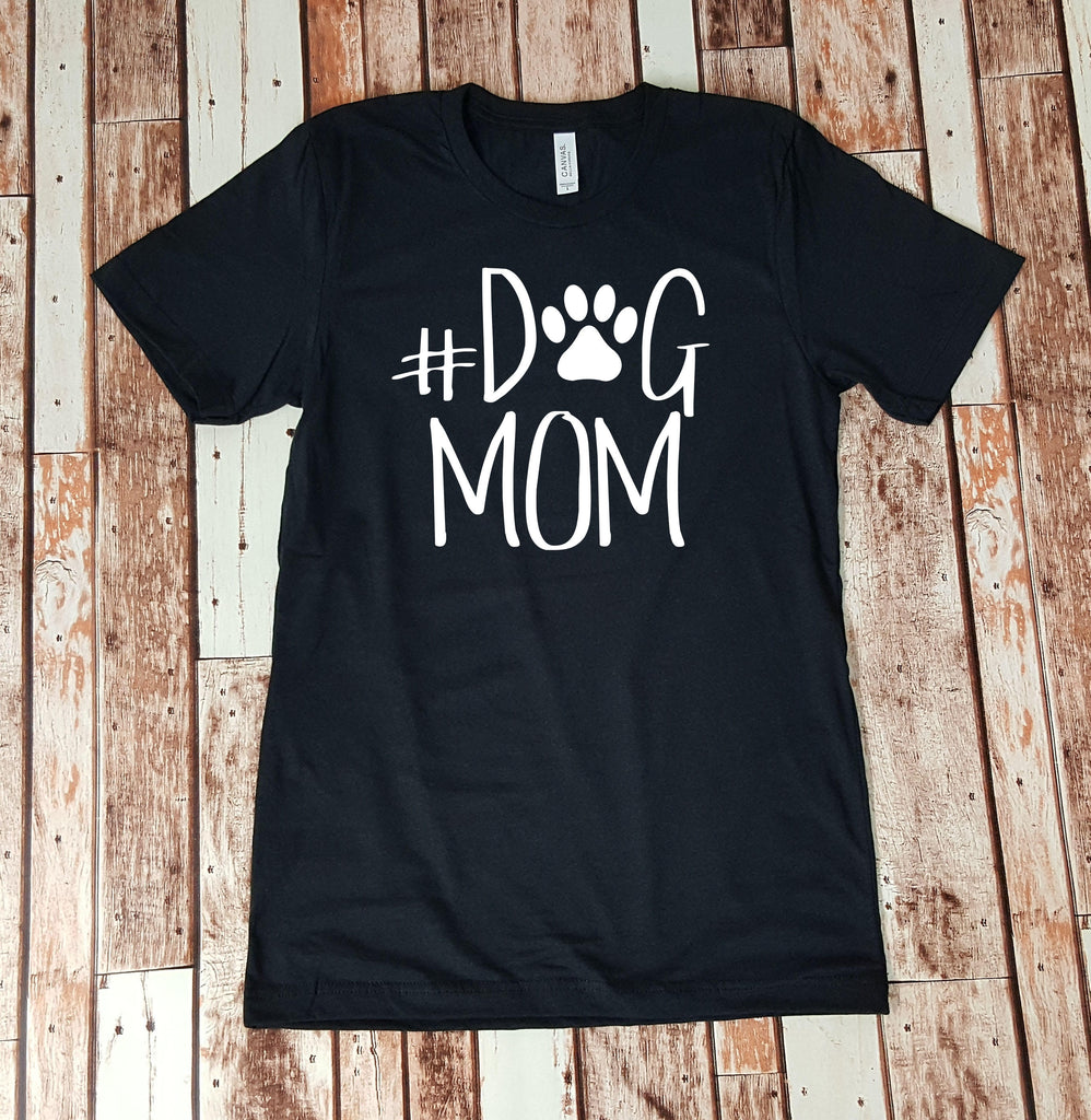 This listing is for (1) blend t-shirt, as seen in the pictures, that says: "#DogMom" A simple, comfy tee perfect for the Dog Moms!