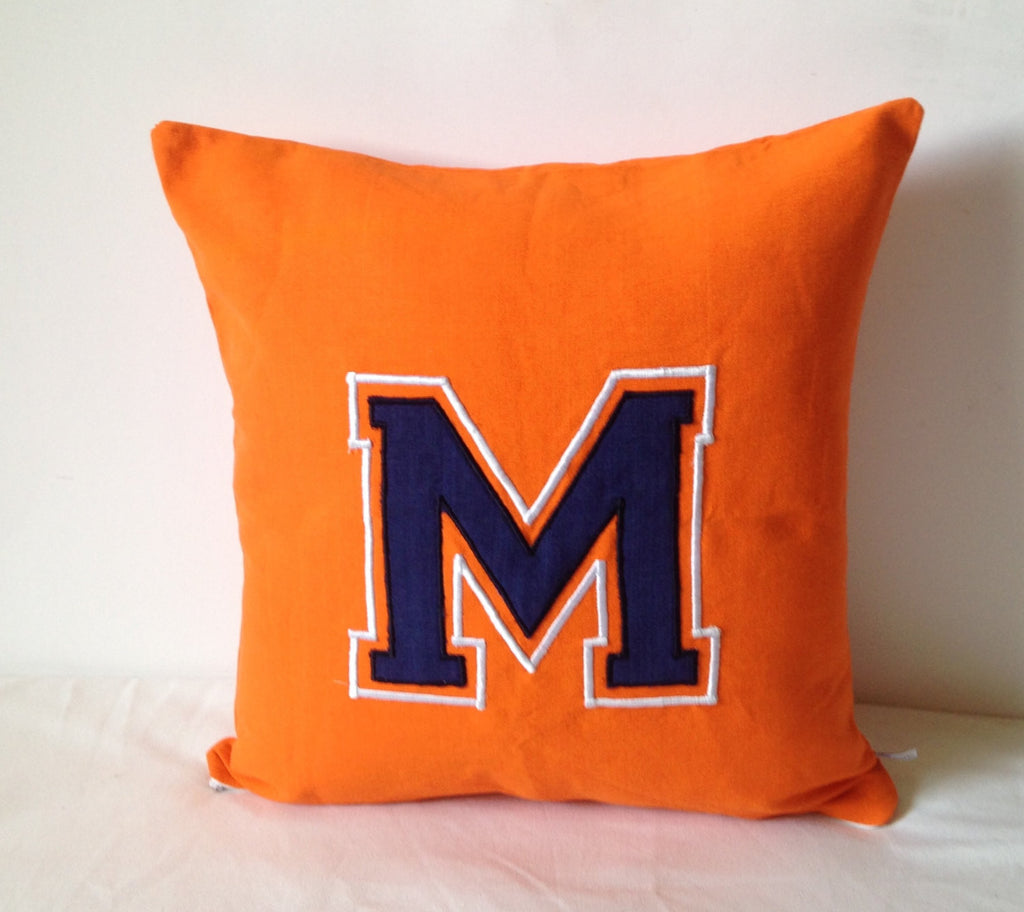Add a punch with any of our thick hand woven cotton fabric. The orange monogram pillow cover is appliqued with a letter in the middle of the pillow cover by manual embroidery machine. You can also change the letter color and threading according to the decor. Invisible zip at the bottom. Listing is for the pillow cover only and not the insert.
