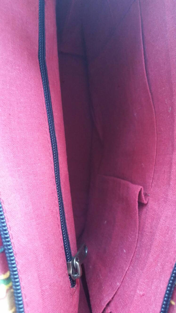 Great quality classic Kantha bag, the precise colorful stitching that you find all over the bag is hand done. Kantha craft is an age old craft which is being practiced since hundreds of years. With great quality lining inside and two pockets to store your mobile phone and other knick knacks, these come with a zipper enclosure too. Enjoy the uniqueness and authenticity. Support handicrafts and Rangeelaa's trusted quality!
