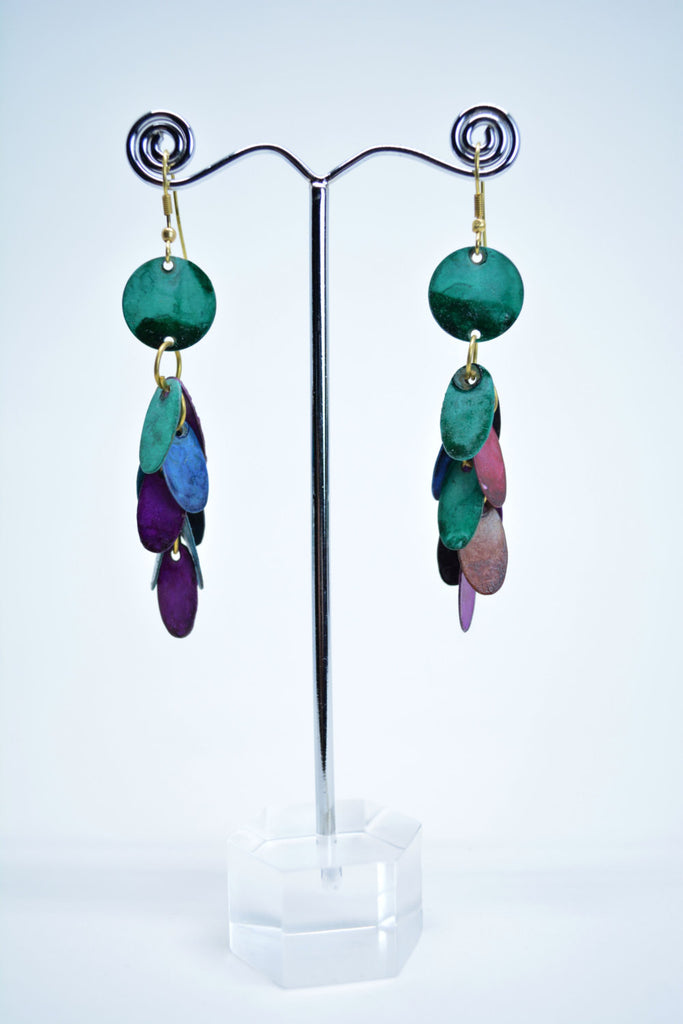 A bunch of a small multicolour ovals made out from brass, painted with a no acrylic painting, these dangle earrings are perfect for a bohemian and ethnic outfit!