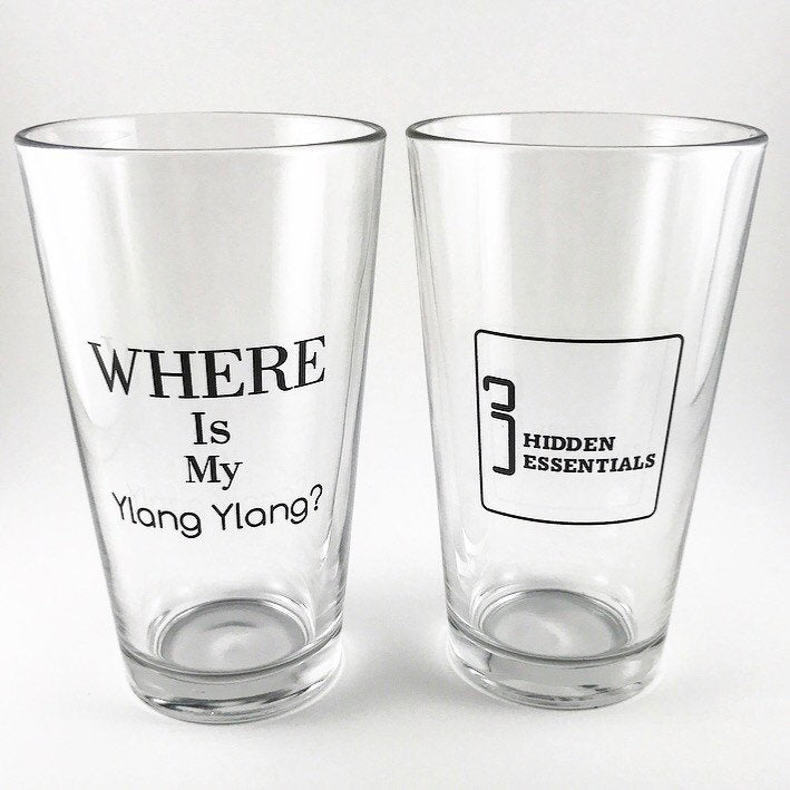 Essential Oils Glassware Gift 16 oz – Where is my Ylang Ylang? - dōTERRA - Young Living - Funny Inspirational Slogans. Glass by Hidden Essentials. Retailer of handmade Essential Oils cabinet boxes. Product made in the United States. Thick Glass. Excellent Quality.
