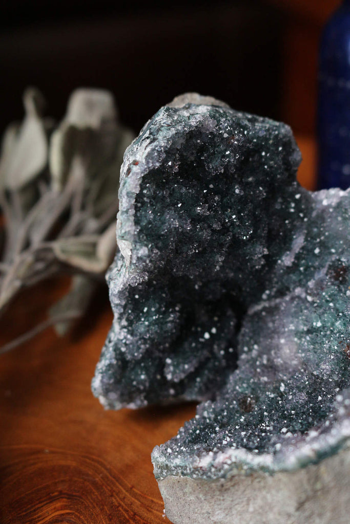 Highly sought after and Mined in Uruguay, South America, Black Amethyst is considered to be both the highest quality and most desirable of all Amethyst available on the market today. The dark (black) color comes from the inclusion of Hematite within the commonly seen purple color of Amethyst together, with an outer layer of consistent sparkly calcitic druzy quartz is what gives Black Amethyst the appearance of a beautifully clear starry night.