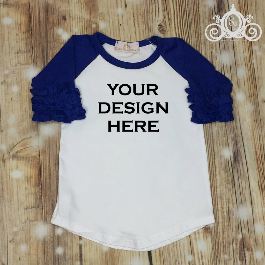 Fourth of July, 4th of July, Girls Royal Blue Custom Icing Ruffle Raglan, Personalized Shirt, Monogram, Girl, Baby Shower Gift, Toddler ShirtnnThis listing is for the specific design shown. If you are looking for custom designs, please choose the blank "Custom Design" shirt in the color of your choice. Please add a photo or comment in the box at checkout to let us know what design you would like on your shirt. nnOur 3/4 sleeve ruffle Raglans are the perfect little girls top. They can be customized with any monogram or design of your choice and come in a variety of color options! They make the perfect matching family shirts! Mix & match colors and styles to create your perfect look! nnTrue to size