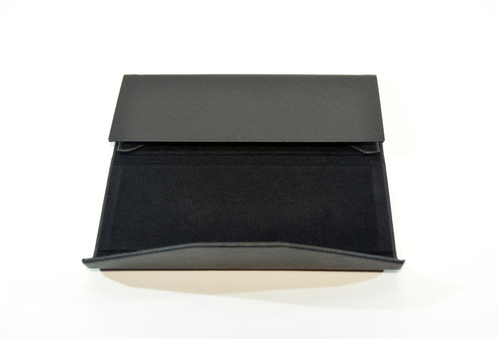 This hand made cute little case, coated inside with a black velvet, flock, is vegan and made with out using any animal glues.