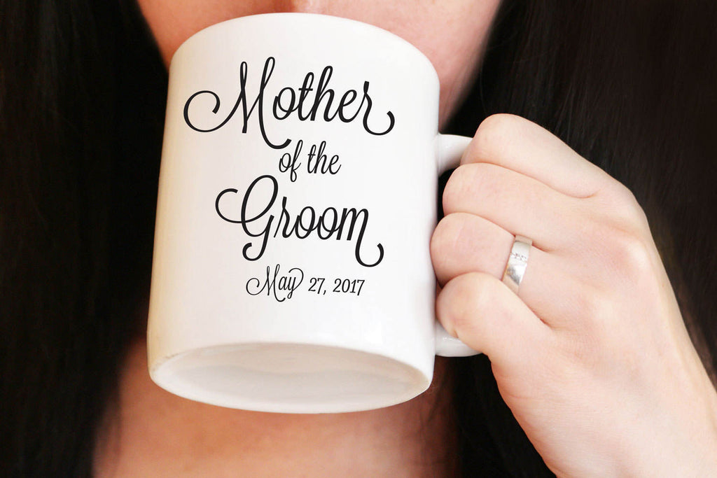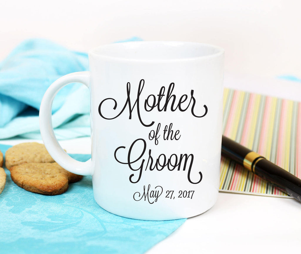 This Mother of the Groom mug features an elegant font with the the wedding date.