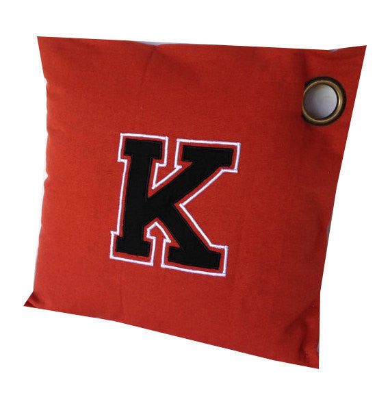 Novel pillow cover with a Grommet attached to the corner will be ideal to decorate your teens room. Add a punch with any of our hand loom woven cotton fabric. The letter is hand cut and appliqued on to the pillow cover and embroidery thread that goes around it. With the Grommet attached to the side, will give flexibility hang and store somewhere.