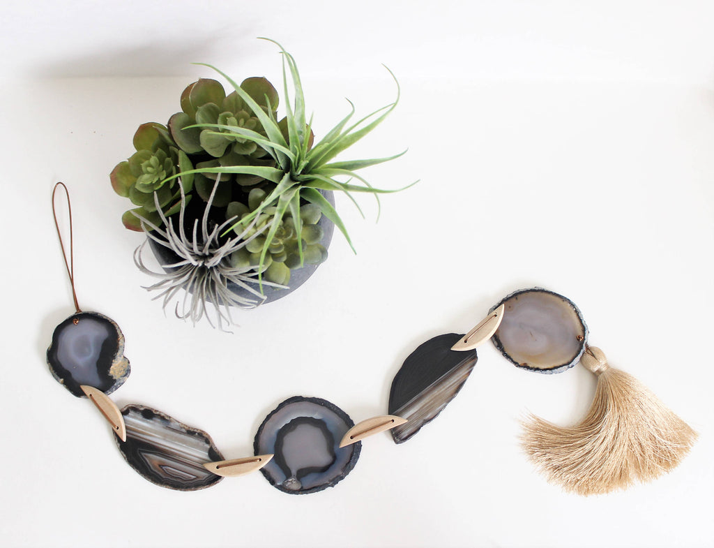 Offered is our Exclusive B o h o Agate Tassel Garland, a very versatile, unique and stunning piece! Hang on your wall for an accent, drape from your fireplace or window or use on your coffee table. For maximum eye candy, arrange with a couple of other sets in different colors for a one of a kind statement piece.