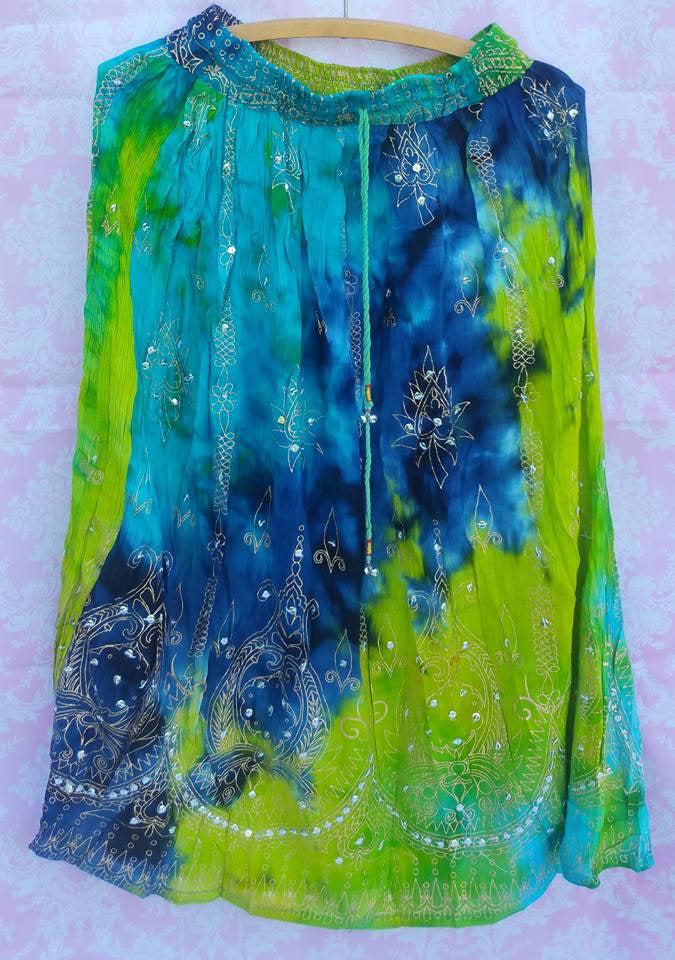 Green & Blue Tiedye Mini/kids Sequin skirt- Hippie skirt Gypsy skirt Sequin skirt Beach skirt Paisley skirt Bohemian skirt-upto medium