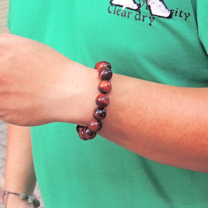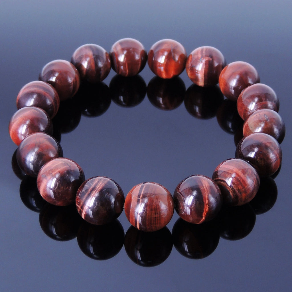 Handmade 14mm Red Tiger Eye Bracelet Healing Gemstone Men's Jewelry DiyNotion BR058