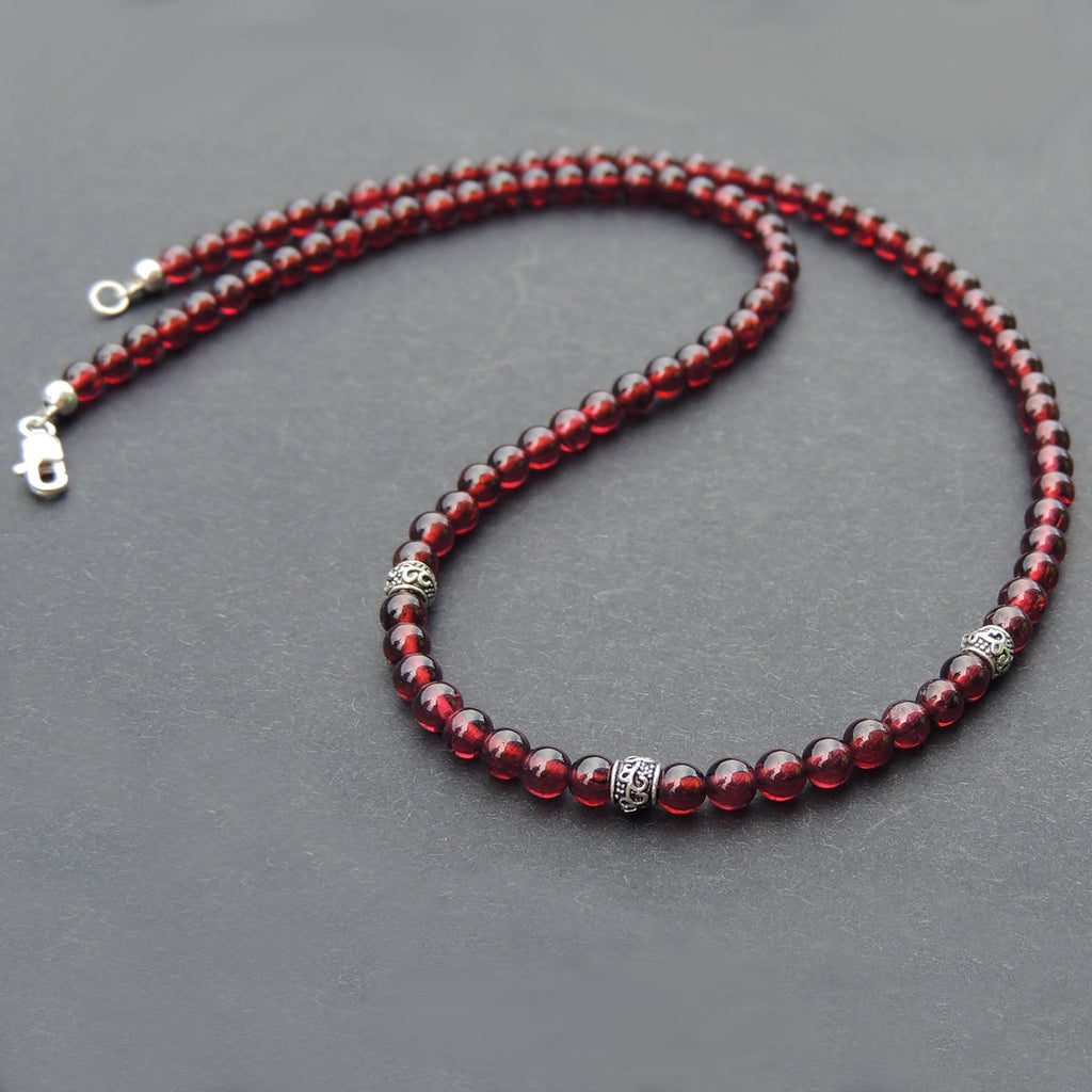 Handmade AAA Garnet Sterling Silver Necklace Gemstone 925 Charms Clasp DiyNoion NK056