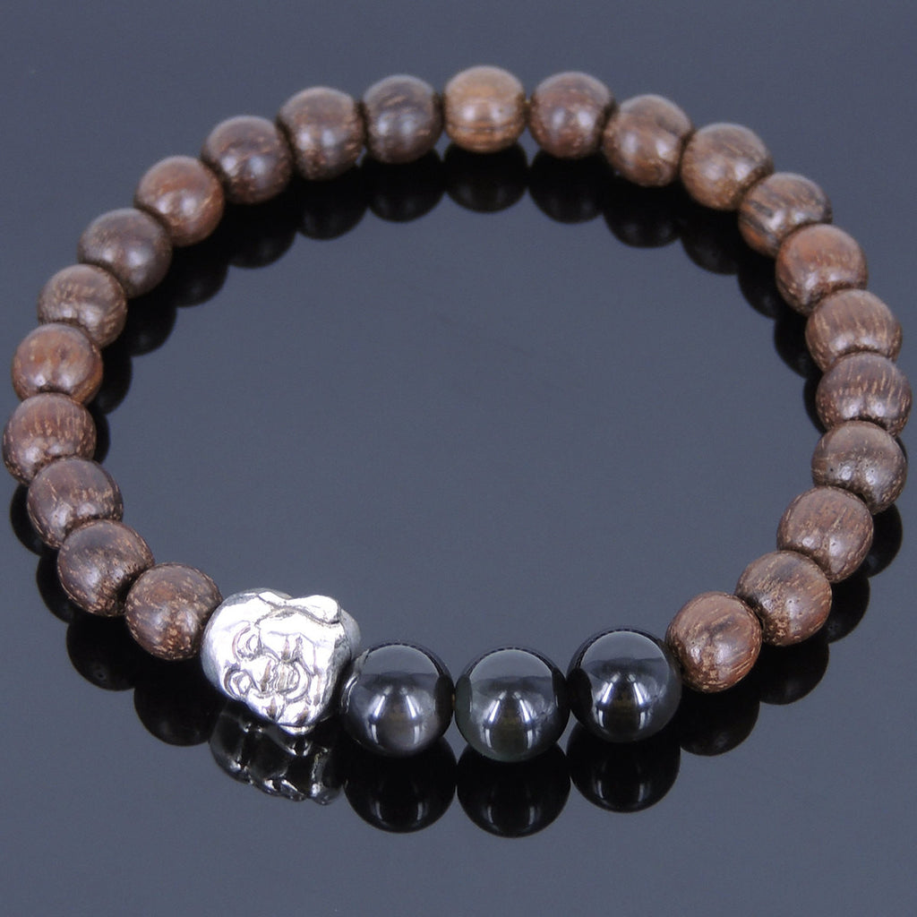 Handmade Agarwood Bracelet Black Obsidian Tibetan Silver Lotus Prayer Meditation Mala MEN WOMEN DiyNotion A042
