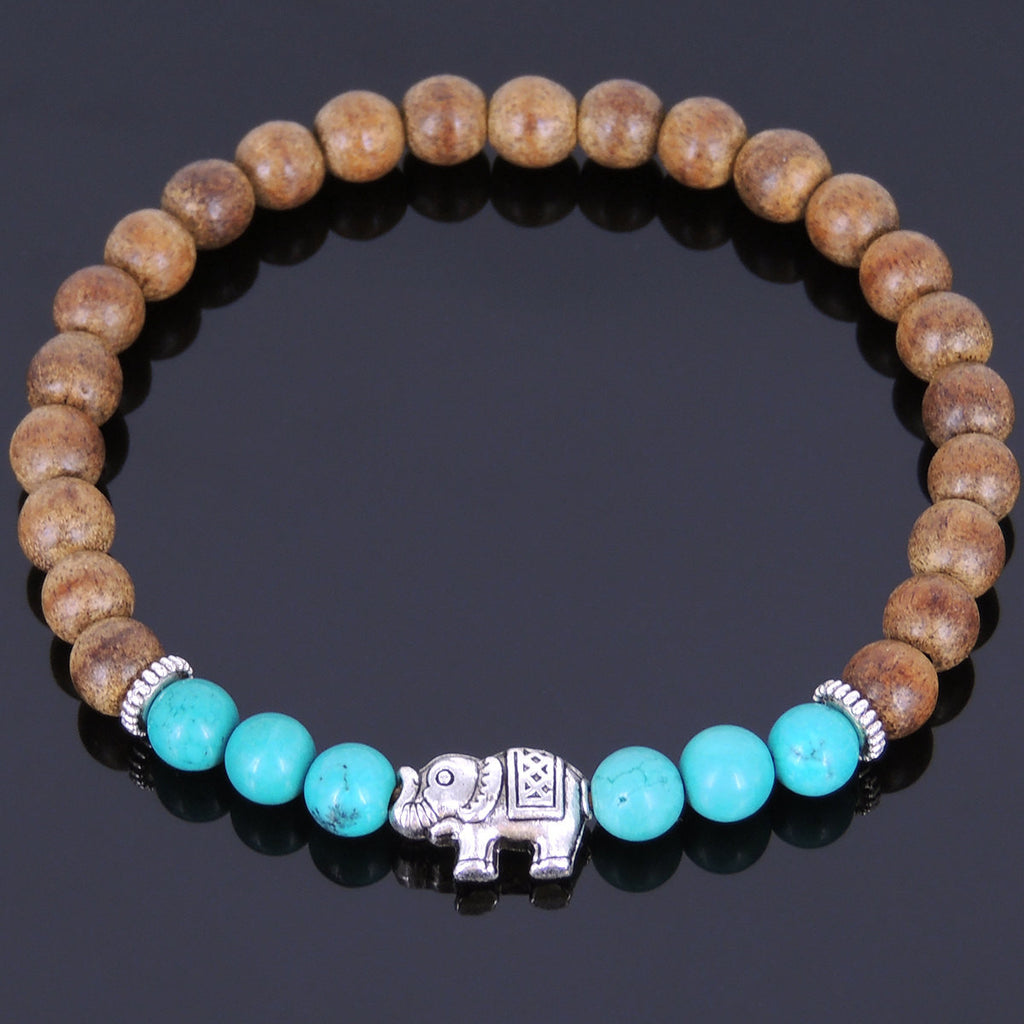 Handmade Agarwood Bracelet Turquoise Tibetan Silver Elephant Prayer Meditation Mala MEN WOMEN DiyNotion A034