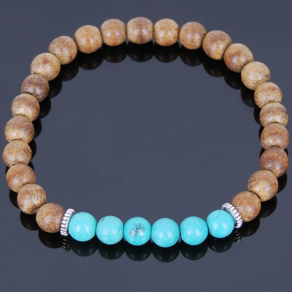 Handmade Agarwood Bracelet Turquoise Tibetan Silver Spacers Prayer Meditation Mala MEN WOMEN DiyNotion A023